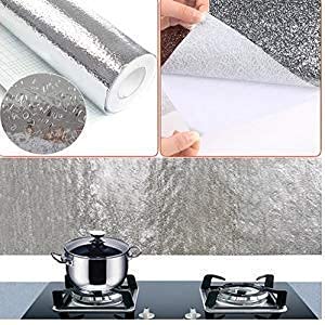 Swadhin Waterproof Glossy Silver Wallpaper Kitchen Backsplash Wallpaper Self-Adhesive Wall Stickers Anti-Mold and Heat Resistant Stickers Cabinets Drawer Wardrobe Almirah Countertop Furniture Decorative Sticker (Silver-60 x 200 cm)