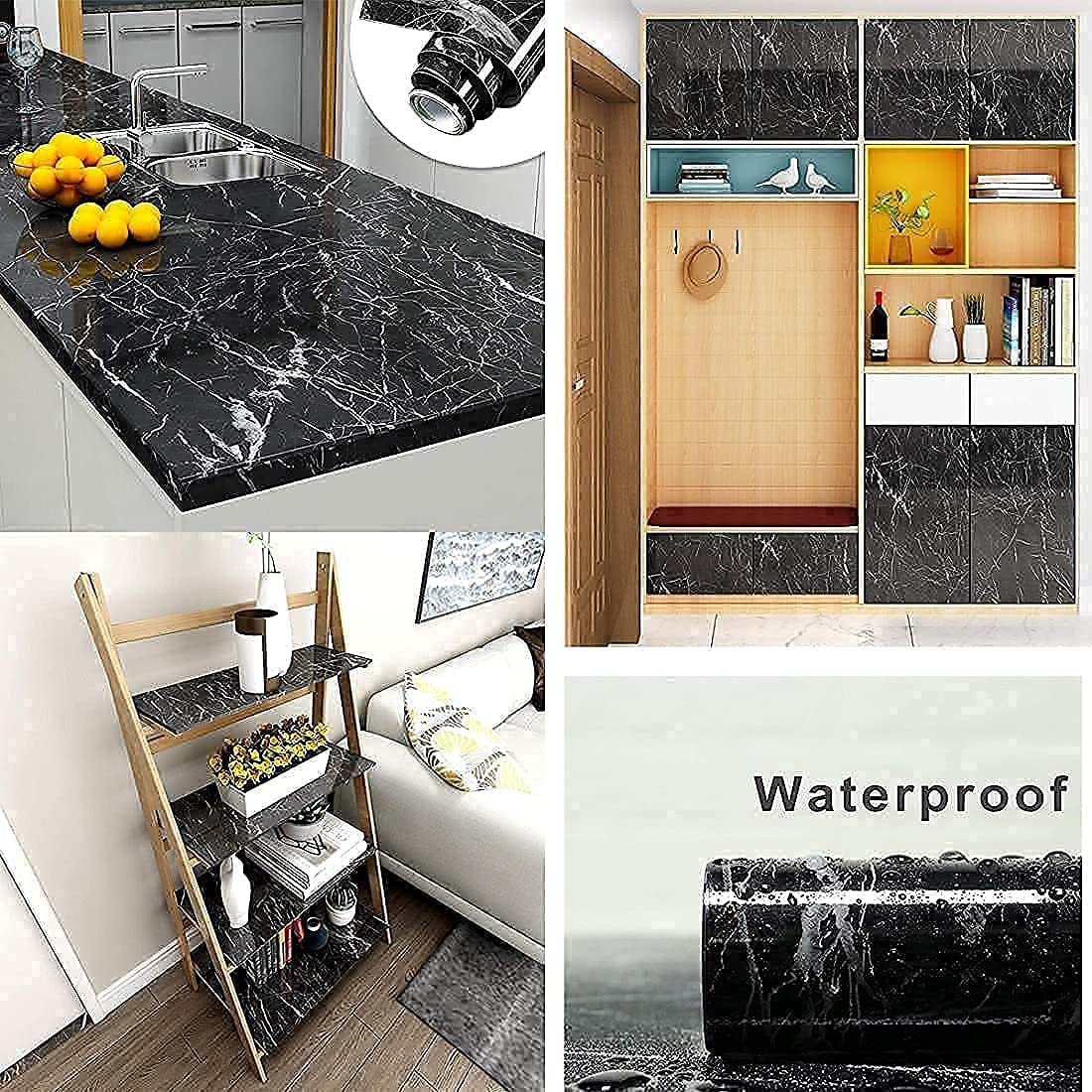 The glossy marble wallpaper are suitable for smooth and flat surfaces and can be used for kitchen counter backsplash furniture notebook drawer crafts countertop cabinet bedside table bookcase bookcase door even wall. Great for kitchens bathrooms home and office applications. Self Adhesive wallpaper is printed on high quality vinyl making it a go-to budget-friendly choice for both temporary and permanent.Marble Self Adhesive Vinyl Paper Tear off the adhesive liner and stick to any dry flat surface. PVC material smooth surface water oil dust moisture easy to clean self adhesive. Ideal for DIY any size of cabinets smooth countertops notebooks dresser drawers handicrafts nightstands bookcases shelves doors and even walls. There are different colors and styles of peel stick marble wallpaper which can meet your different decoration styles. You can choose the removable wallpaper that suits your style according to your needs. Perfect for cover cabinet shelve drawer furniture backsplash DIY decor and more.No need for special tools or messy grout mixtures. Simply cut to size peel the sheet of vinyl tile off of the paper backing and stick to a clean flat surface.
