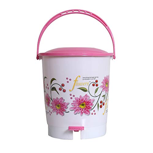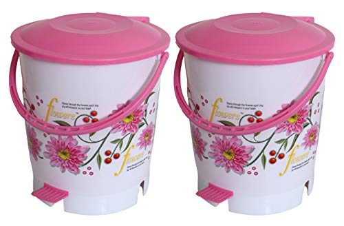 HomeHome ImprovementHousehold SuppliesKuber Industries Flower Print Plastic 2 Pieces Garbage Waste Dustbin/Recycling Bin for Home Office Factory with Lid 10 Liters (Pink)-KUBMART10942