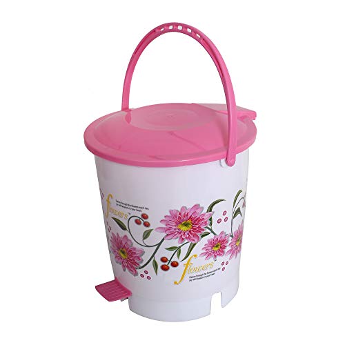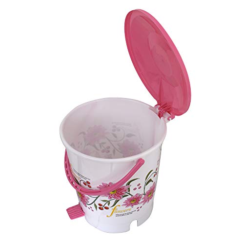 Kuber Industries Flower Print Plastic 2 Pieces Garbage Waste Dustbin/Recycling Bin for Home Office Factory with Lid 10 Liters (Pink)-KUBMART10942