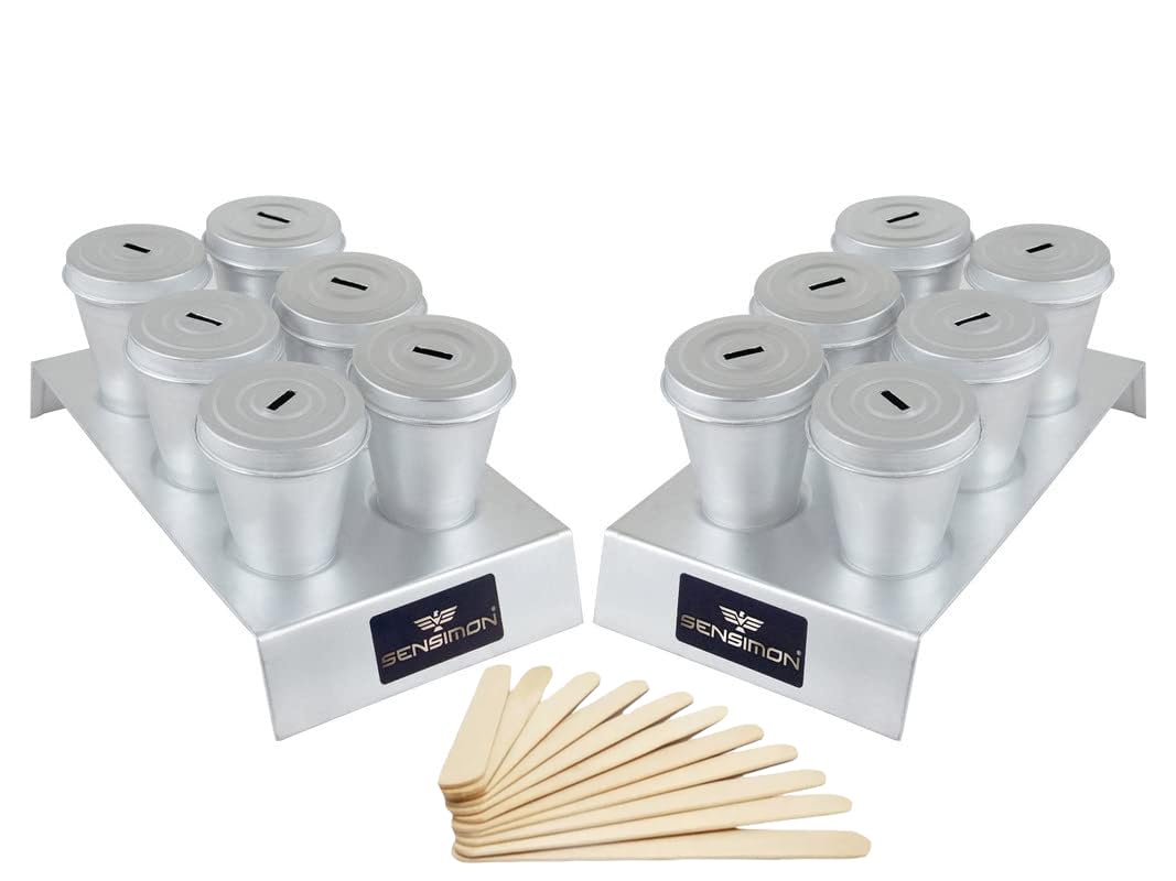 Sensimon Aluminium Reusable Kulfi Cone Mould | Ice Cream Maker Mould Stand Set of 12 with Ice Cream Stick (7 x 5 x 2.5 cm) |Homemade Ice Cream Mold Silver