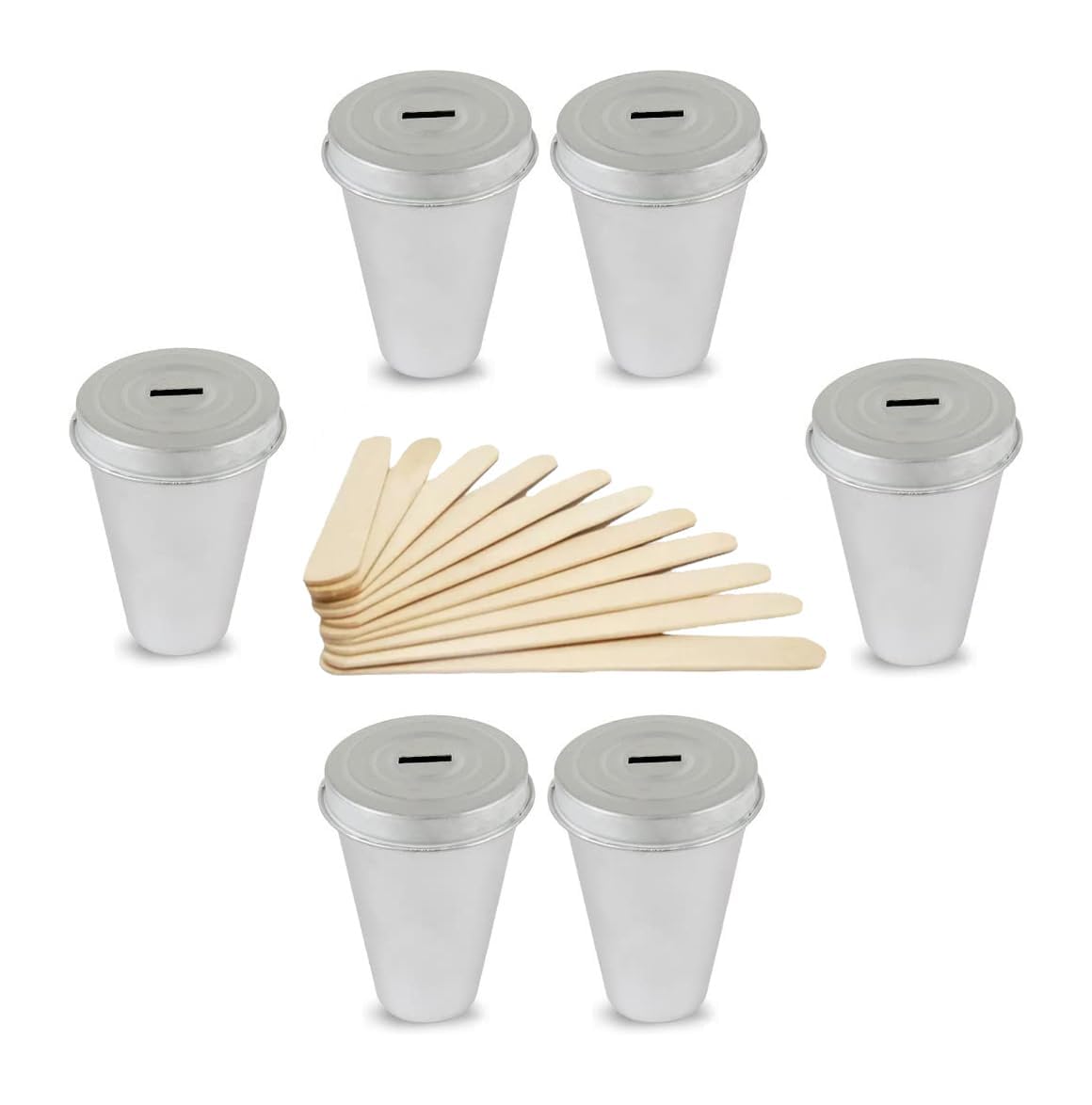 Prepare delicious and hygienic frozen treats at home with this Aluminium Reusable Kulfi Cone Mould Set of 6 with Stand & Ice Cream Stick DIY Kit. Crafted from high-quality food-grade aluminium these moulds ensure excellent durability resistance to rust and safe reuse for countless dessert-making sessions. The set includes 6 individual cone-shaped moulds a stable stand to keep them upright in the freezer and ice cream sticks offering everything you need to make traditional kulfis ice lollies popsicles and more. With an easy-release design and smooth inner surface your kulfis or ice creams pop out perfectly shaped without sticking or breaking. The compact size of each mould (7 x 5 x 2.5 cm) allows for convenient storage and effortless handling. Whether it's a summer family gathering kids' party or a personal dessert craving this DIY kit is the perfect companion for crafting refreshing frozen delights in your kitchen. Create endless flavor combinations and enjoy homemade frozen treats made fresh and just the way you like!