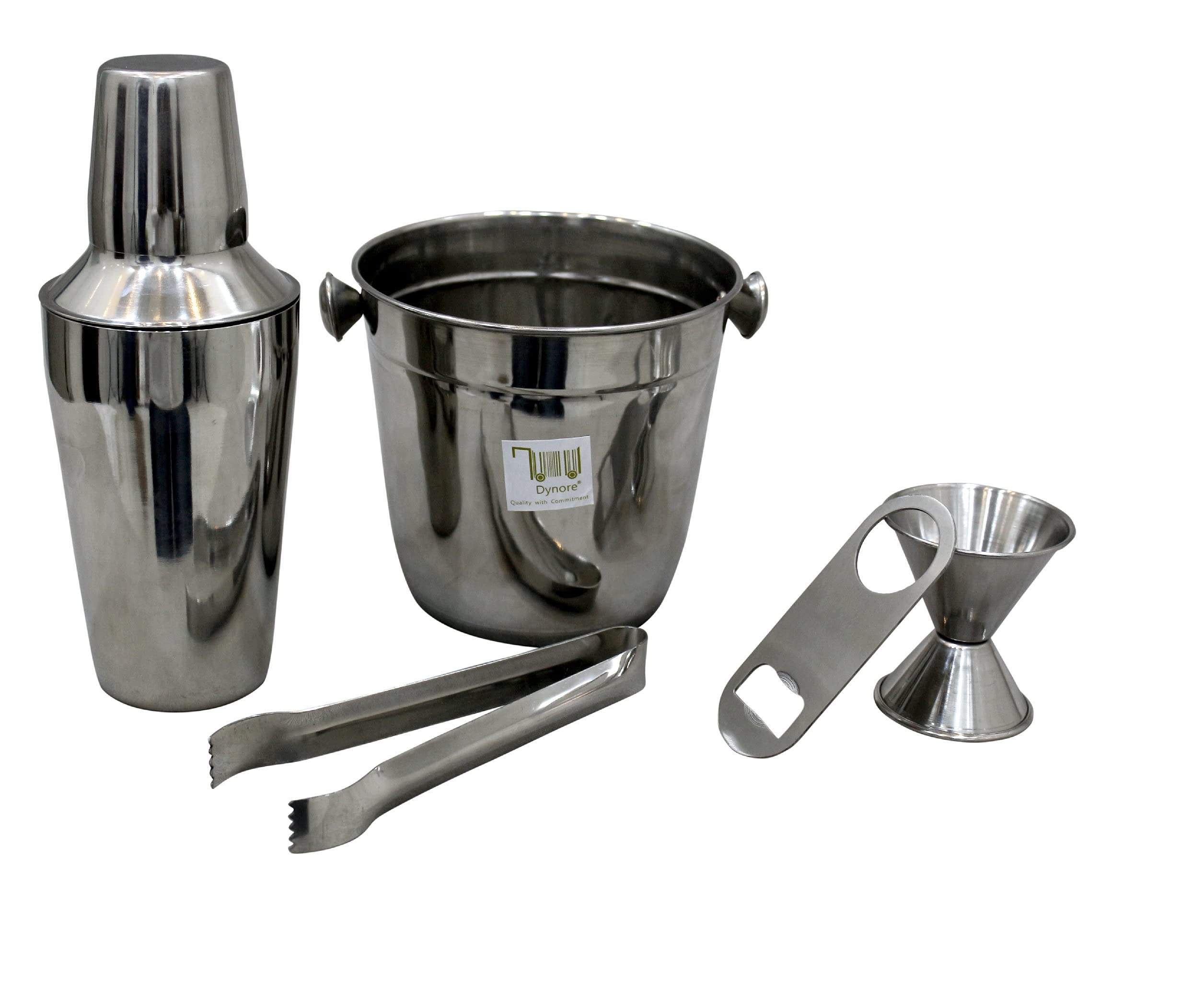 Dynore 5 pcs Beginners Bar Set - Ice Bucket, Small Bottle Opener, Regular Cocktail Shaker, peg Measure, ice Tong
