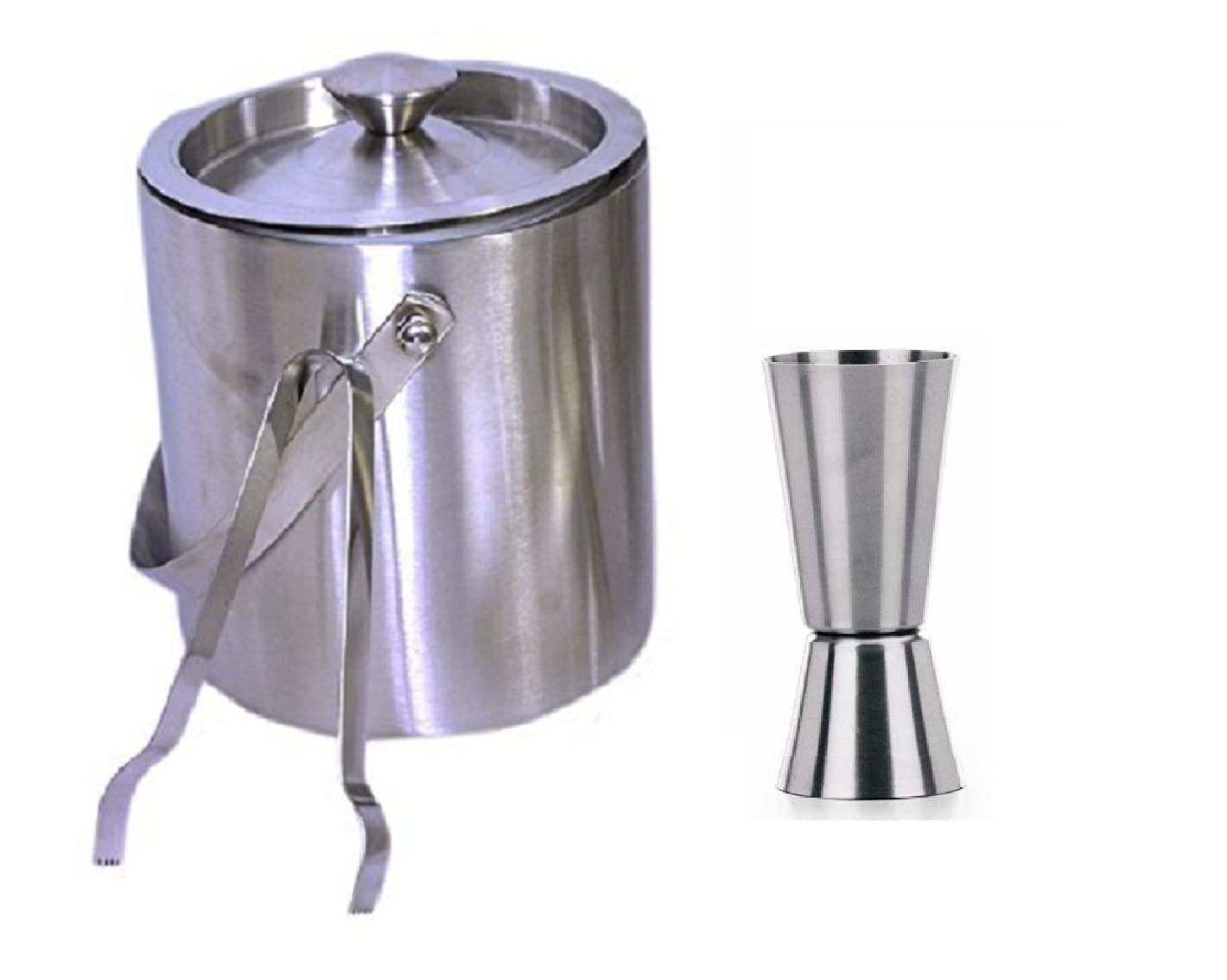 This ice bucket is made up of heavy gauge stainless steel. The double walls of the ice bucket keep the temperature on the inside low and prevent the ice from melting fast. It is a perfect addition to your bar or a gathering. Ice Tongs are an excellent small pair of tongs. Made from a high quality stainless steel these tongs are ideal when making your cocktails. The jagged claws make sure you're not wasting time grabbling that ice. The peg measure is also included in this set which is 30/60 ml tall. Ice Bucket capacity- 1500 ml