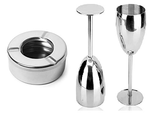 Serve your wine in style with This ''Goblet glass'' set. These glasses are beautiful for serving red or white wine and keep white wine chilled longer than glass or crystal. perfect for a cocktail party, cocktails gifts, home bars, professional bartenders etc.. Best of all, these glasses are dishwasher safe and are perfect for out on the deck or anywhere a glass or crystal goblet may break.Break-resistant and Burn-resistant Ash tray having high quality and sits nicely and presentably when placed. The ash tray is with a lid.