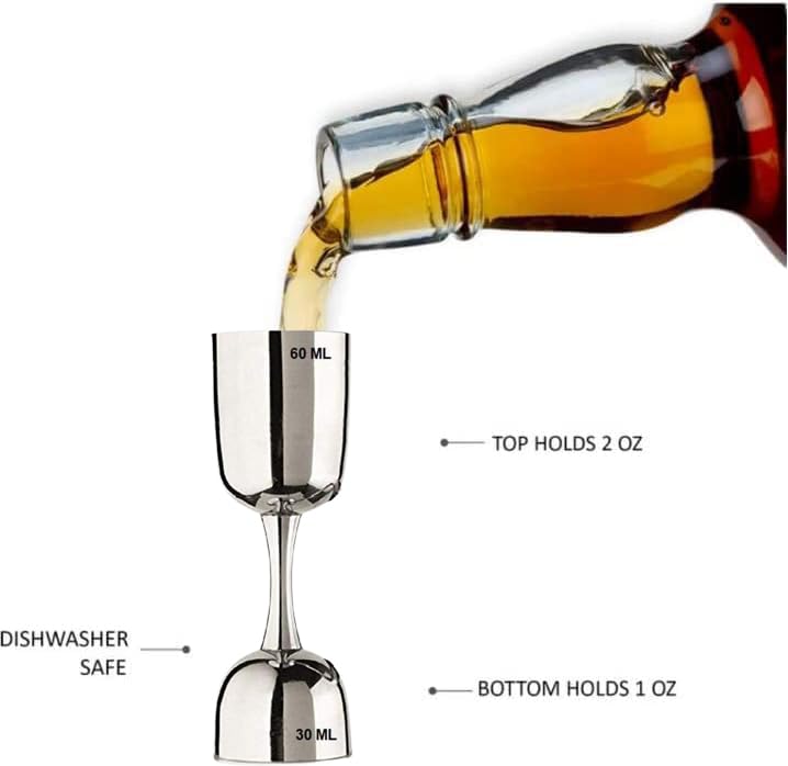 Prisha India Craft Premium Peg Measurer Jigger 30 & 60 ml Cocktail Jigger Shot Glass Drink Measuring Bar Tool Double Side Jigger - Limited Edition. A very rare collectable & beautiful engraved work on jigger makes it more rich look. Double Jigger Material: Stainless Steel-304 Colour: Silver Capacity: 30-60 ml 1 oz / 2 oz For house parties. Two-Tone Coating