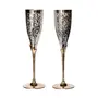 Start your celebration with these distinctive elegant flutes handcrafted in brass and coated silver & gold for the classy look. Set of two Silver Plated and Brass Tall Champagne Flute Glasses. These Beautiful and Sturdy Flutes are 9.5" Tall and have a 2" Rim and 2 3/4" Base. The Silver Plated Cups have a 4 Ounce Capacity. Disclaimer: Product color may slightly vary due to photographic lighting sources or your monitor settings.