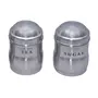 Set of 2 Tea and Sugar Maharaja canisters; 2 piece set of canisters / kitchen storage made up of stainless steel and being very high quality and extremely durable and rust free. Having elegant style like Maharaja. It has tea and sugar written on them on the side.