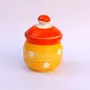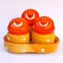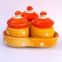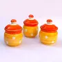 KHURJA POTTERY Pickle Jar Storage Masala Container Aachar Chutney Serving Canister Condiment Set with Tray for Dining Table (Set of 3 Yellow and Orange) Microwave and Dishwasher Safe