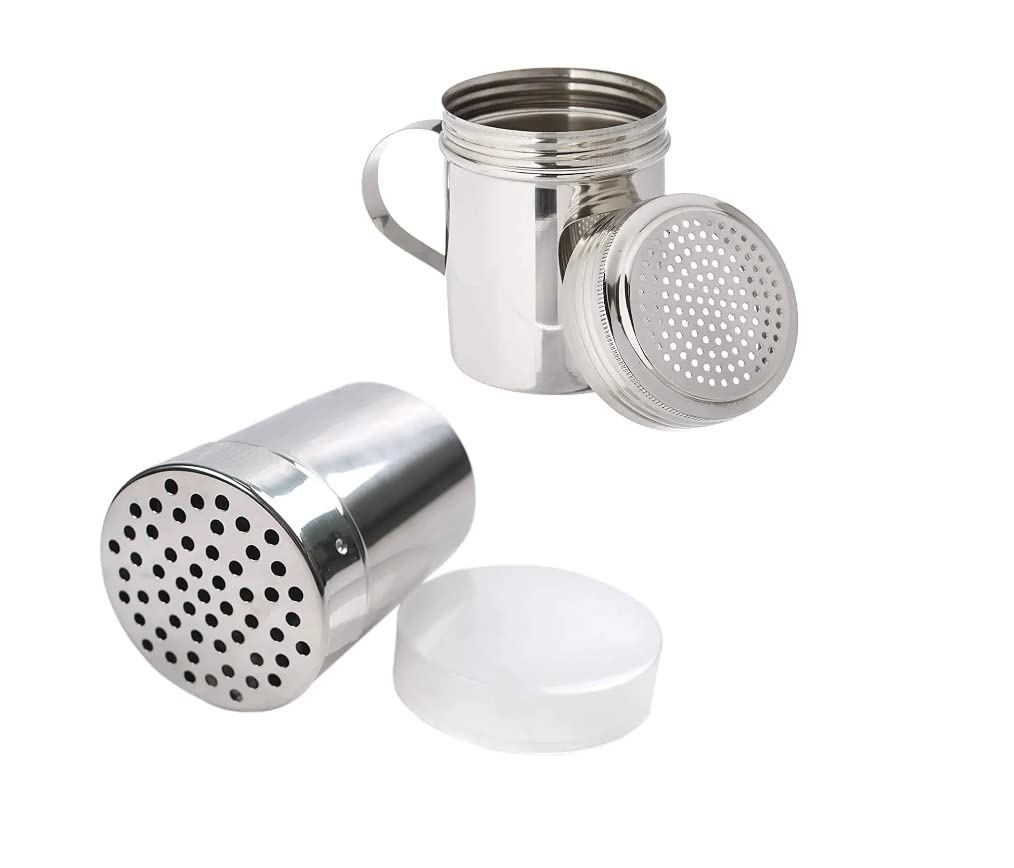 Food grade stainless steel shakers, rust proof and stain proof with ABS dust-proof lid to keep moisture out and stops any powder floating out, Used in dispensing salt, pepper, sugar, powdered sugar and all kinds of powder, granular condiment for cooking, baking, Featuring a screw-on top for simple filling and an ergonomic handle for comfortable use. Dimension : 7.5x7.5x10 cm (LxBxH), Diameter : 7.5 cm, Weight : 217 Grams, Capacity : 250 ML, Set of 2