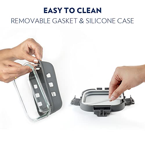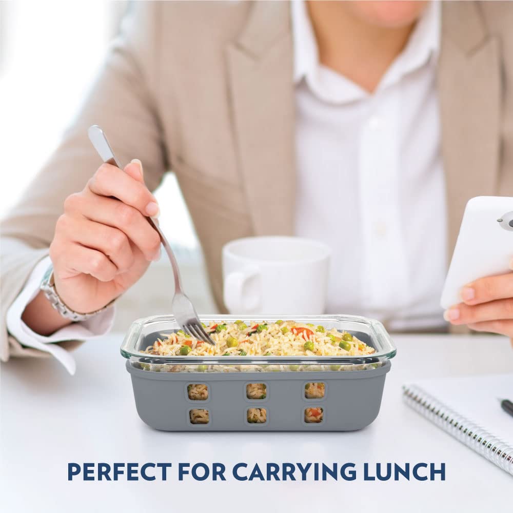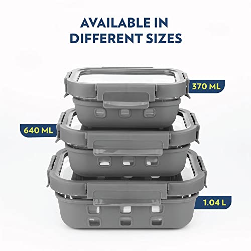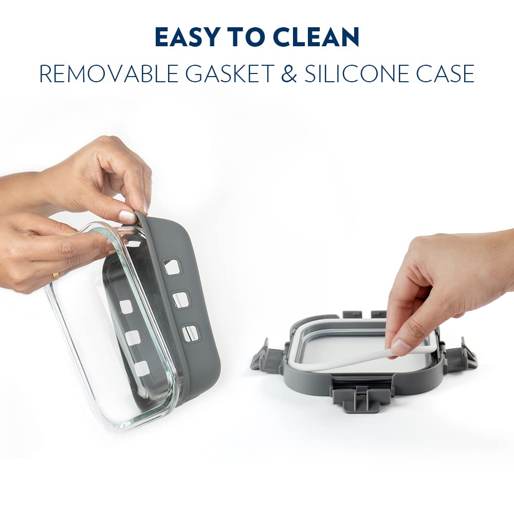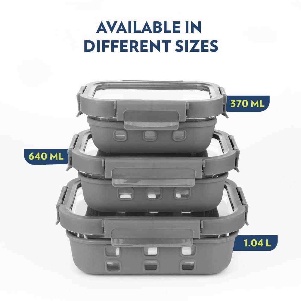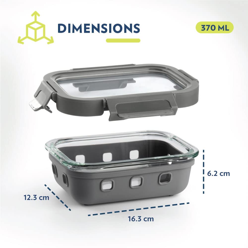 HomeKitchenContainersJars & ContainersBorosil Klip N Store Plus 370 ml Rectangle Glass Food Storage Container with Air Tight Glass Lid | Borosilicate Glass Container for Lunchbox | Microwave & Dishwasher Safe | Transparent