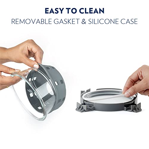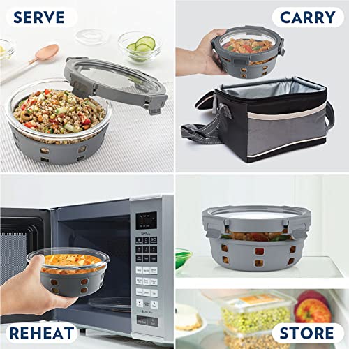 HomeKitchenContainersJars & ContainersBorosil Klip N Store Plus 620 ml Round Glass Food Storage Container with Air Tight Glass Lid | Borosilicate Glass Container for Lunchbox | Microwave & Dishwasher Safe | Transparent