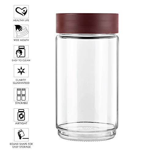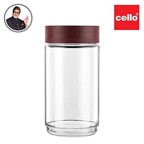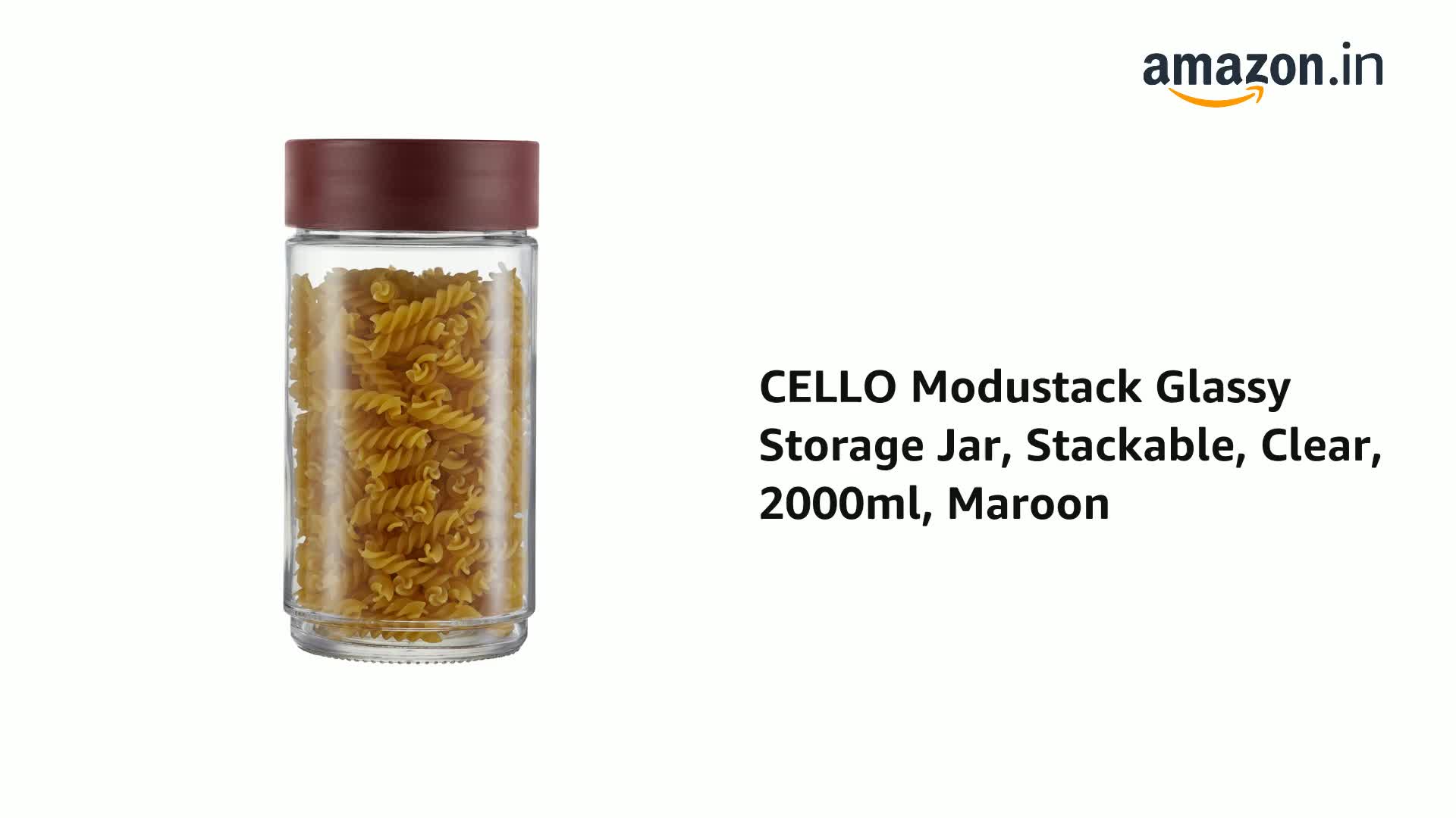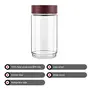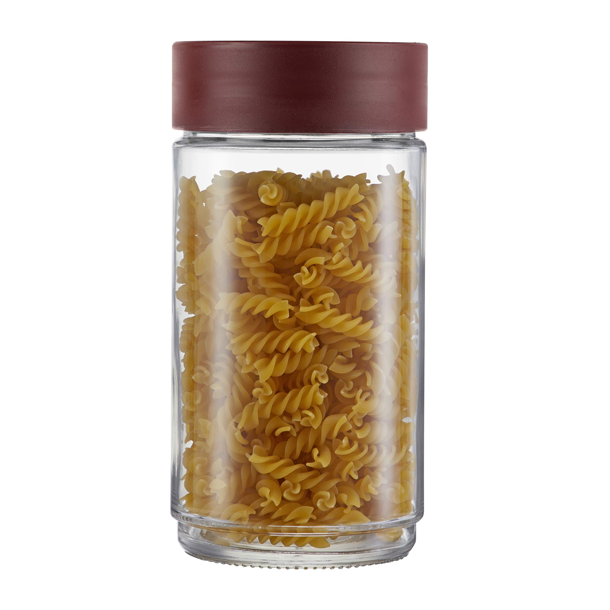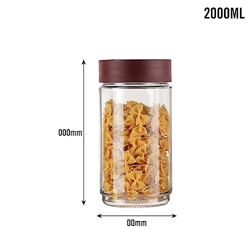 CELLO Modustack Glassy Storage Jar | Glass Jar with Lid | Air Tight Steel Lid and Stackable | For Storage of Food, Pulses, Spice, Cereals, Cookies, Dry Food | 2000ml, Maroon