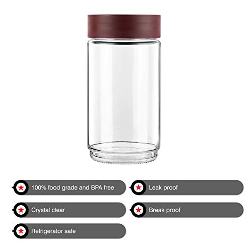 • Stackable jars with non slip rim on the unbreakable plastic lids.