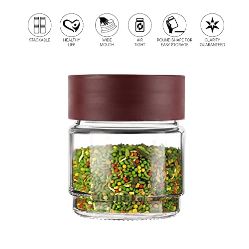 Cello introduces the Modustack Glassy Storage Jar collection to add style and function to the spaces in your home. The storage jars have thick soda lime glass side walls for added durability and stability. The clear glass jar features a wide mouth opening for ease of access and scooping making the jars perfect for storing masalas grains pastas pickle sugar cotton balls on the bathroom counter-top and for storing crafting supplies and stationery. Airtight lids with a lip makes these jars stackable and the best storage solution to optimise space. Available in classic shades to match your vibe the Modustack glass jars are the perfect substitute for plastics in your home.