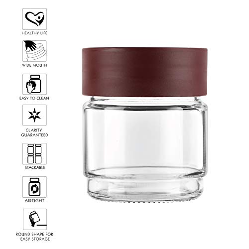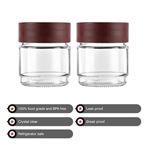 • Stackable jars with non slip rim on the unbreakable plastic lids.