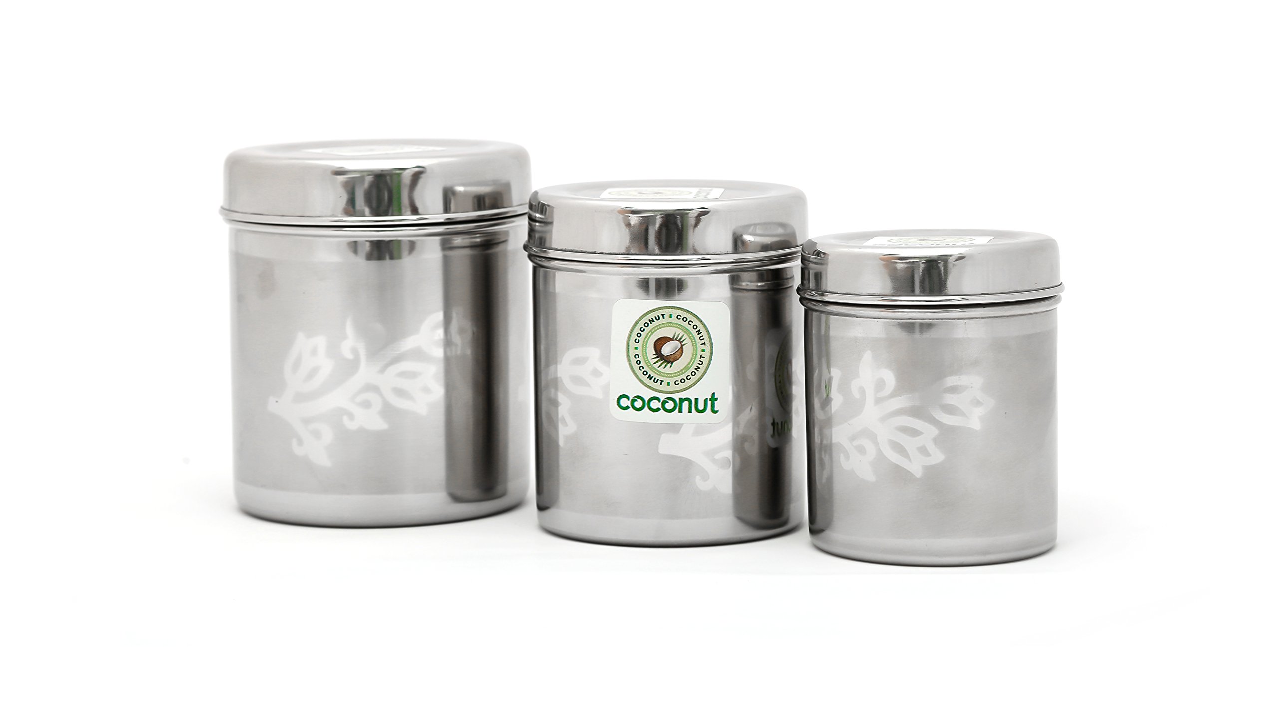 coconut Stainless Steel Floral Container/Storage Set of 3 (2000 ML, 3000 ML & 4000 ML)