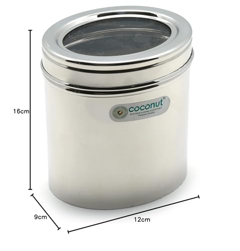 Coconut is range of innovative and quality products for Home and Kitchen. Crafted from High-Grade Stainless Steel which will not crack or rust. Container have enough Deep Space for storing Edibles Grains Snacks etc. Compaq size makes it easy to store in kitchen cupboards. Easy to clean and wash they have very exotic silver shining. It can easily be Handled and easy to cleanUnbreakable with Mirror Finish.It is an essential product for kitchenware collections. Product Content : Coconut Stainless Steel E22 Oval Clipart C-thru. Product Dimension - Width -12 Cm Length - 9 & Height -16 Cm. Capaciy - 1000 ml