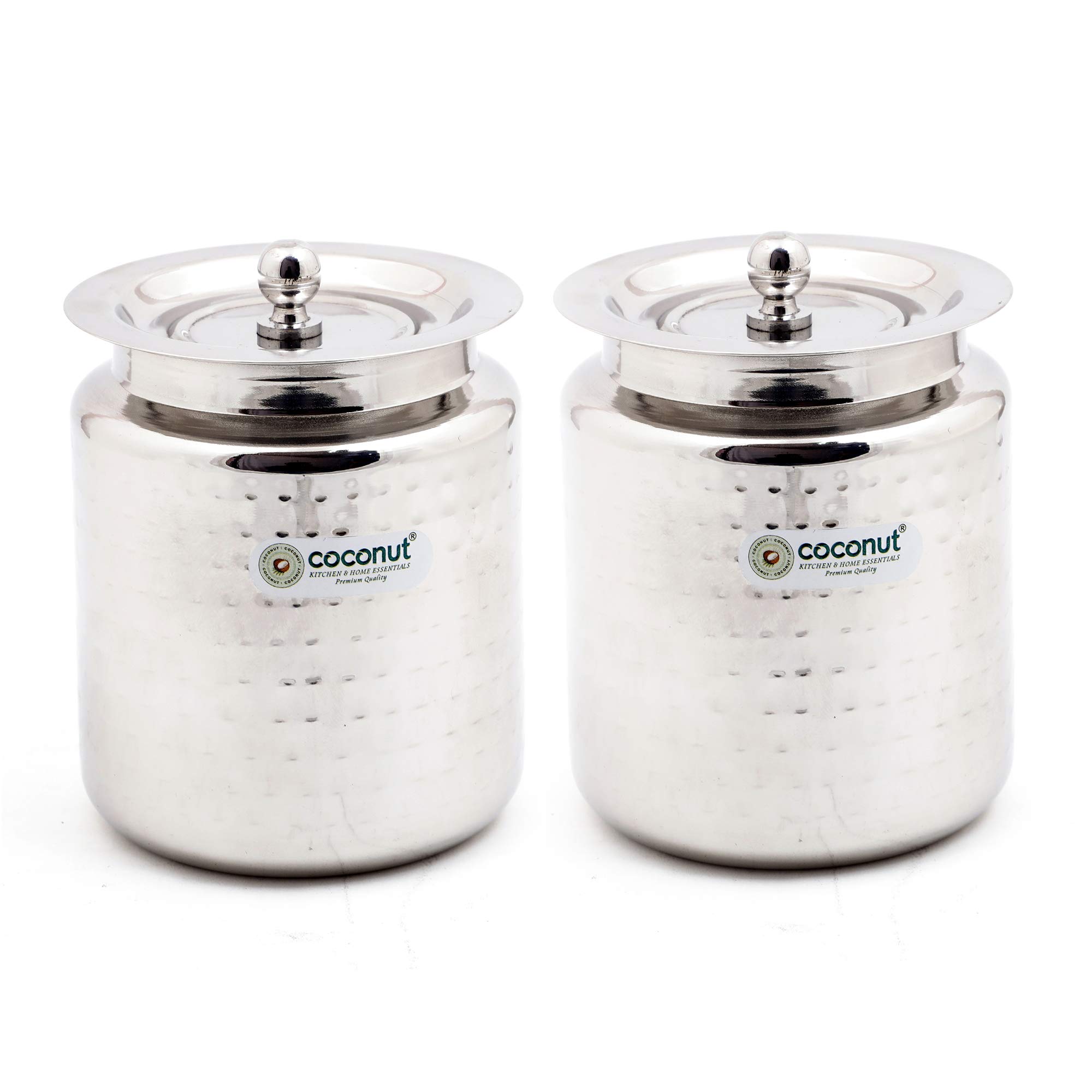 Coconut Stainless Steel Hammered Ghee Pot/Oil Pot with Lid - Set of 2 Pieces - 600 ML Each