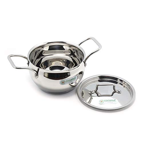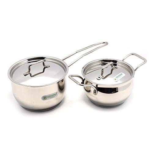 Coconut is a range of Innovative and products for Home and Kitchen Utilities. Triply Sauce Pan is made with base that has blend of three metals that is quite strong and it is great addition to your kitchen cuboards.This pan makes it easy to cook food faster and evenly. The product is made from stainless steel hence has a strong build. The bottom sandwich steel makes it more durable. The handle doesn’t shake or loosen because it is riveted in place. It is non-corrosive surface makes it free from rust. The bottom of the vessel is made with triply making it stronger and helps it to cook food faster and evenly due to which the food doesn’t stick to the bottom and conserves fuel too. This is Gas & Induction Compactible . Product content : SS Sauce Pan(1000ML) & (Rexona (1500ML) - Set of 2 Quantity.