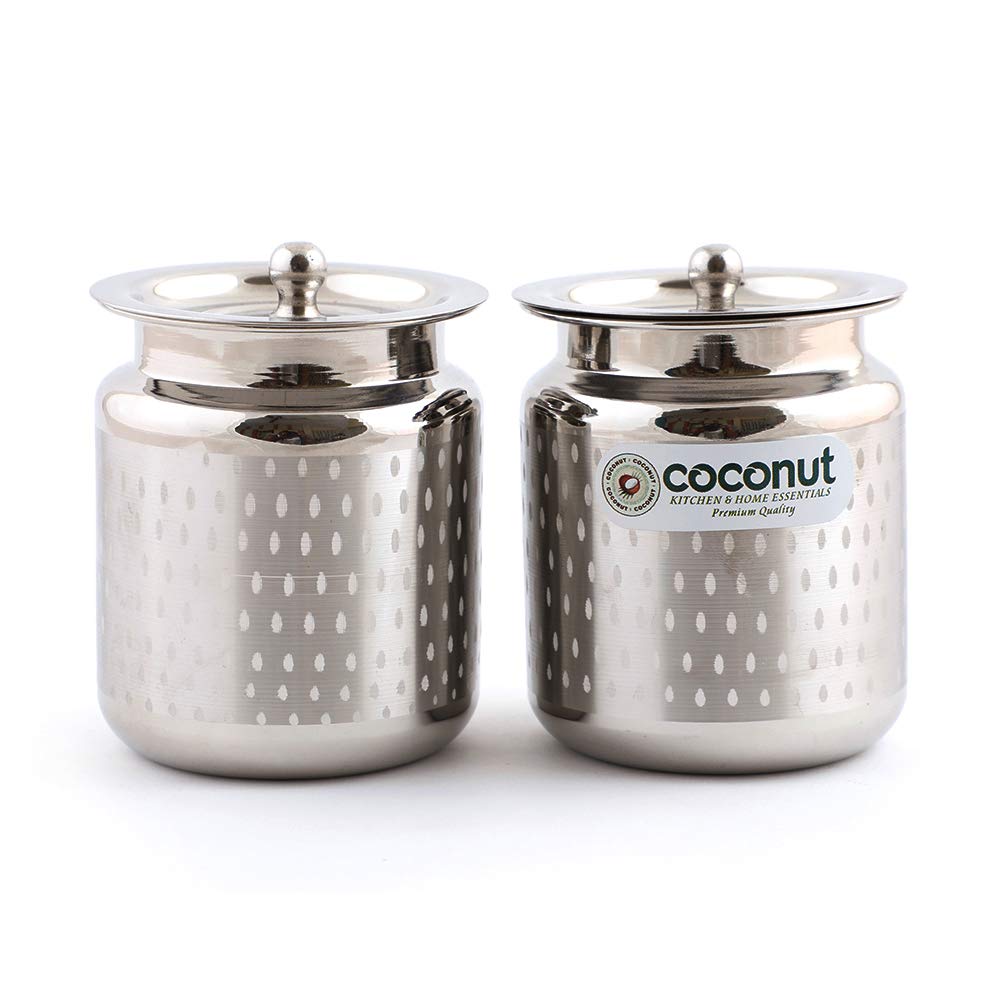 Highly durable and made of fine stainless steel. Ideal for Oil or Ghee Or Sugar Stylish and elegant product for modern kitchens.Food Grade - Pack of 2 Capacity : 600 ML Its easy to store in kitchen cupboards. Rustcrack and stain proof