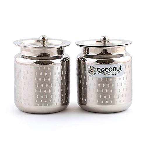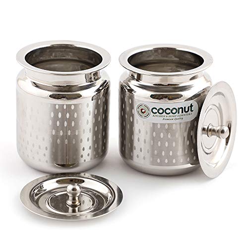 Highly durable and made of fine stainless steel. Ideal for Oil or Ghee Or Sugar Stylish and elegant product for modern kitchens. Food Grade - Pack of 2 Capacity : 1500 ML. Its easy to store in kitchen cupboards. Rustcrack and stain proof