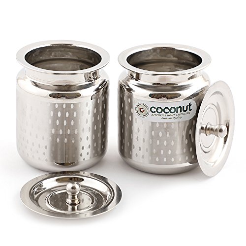 Coconut is a range of innovative and products for Home and Kitchen. This Stainless Steel Shower China Bharani Ghee Pot is made from 100% Food Grade Stainless Steel Material. It is highly durable and it is ideally used for storing Ghee Oil Sugar Milk Pickles Curds Etc. This is easy to Store in Kitchen cupboards. It gives an elegant look for the modern kitchens which comes with Shower Design and Glossy Mirror Mirror Finish. It Doesn't Rust Crack and Stain Proof Product. Product Content : SS Shower China Bharani Ghee Pot with SS Lids - Set of 2 Pieces Capacity - 850ML Each.