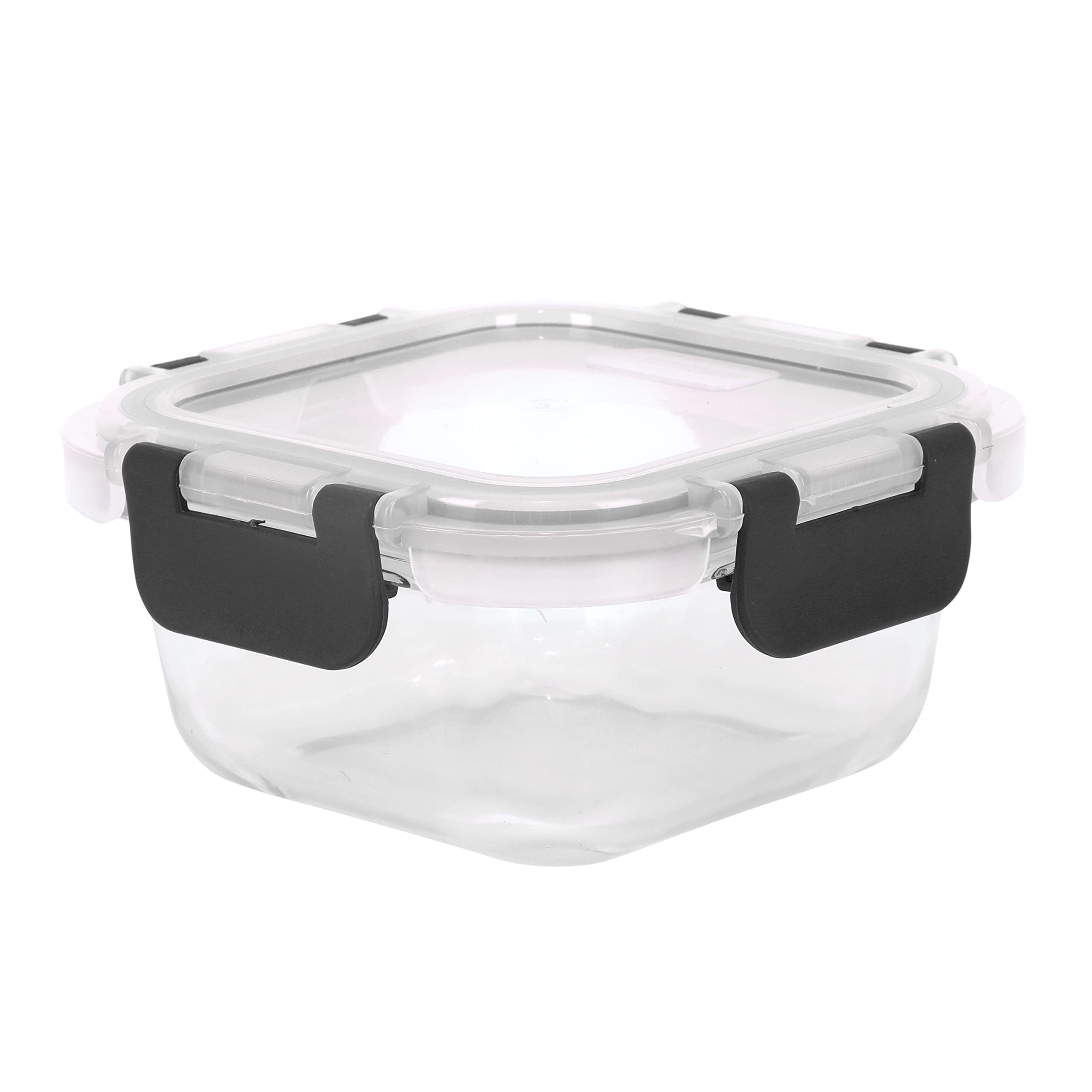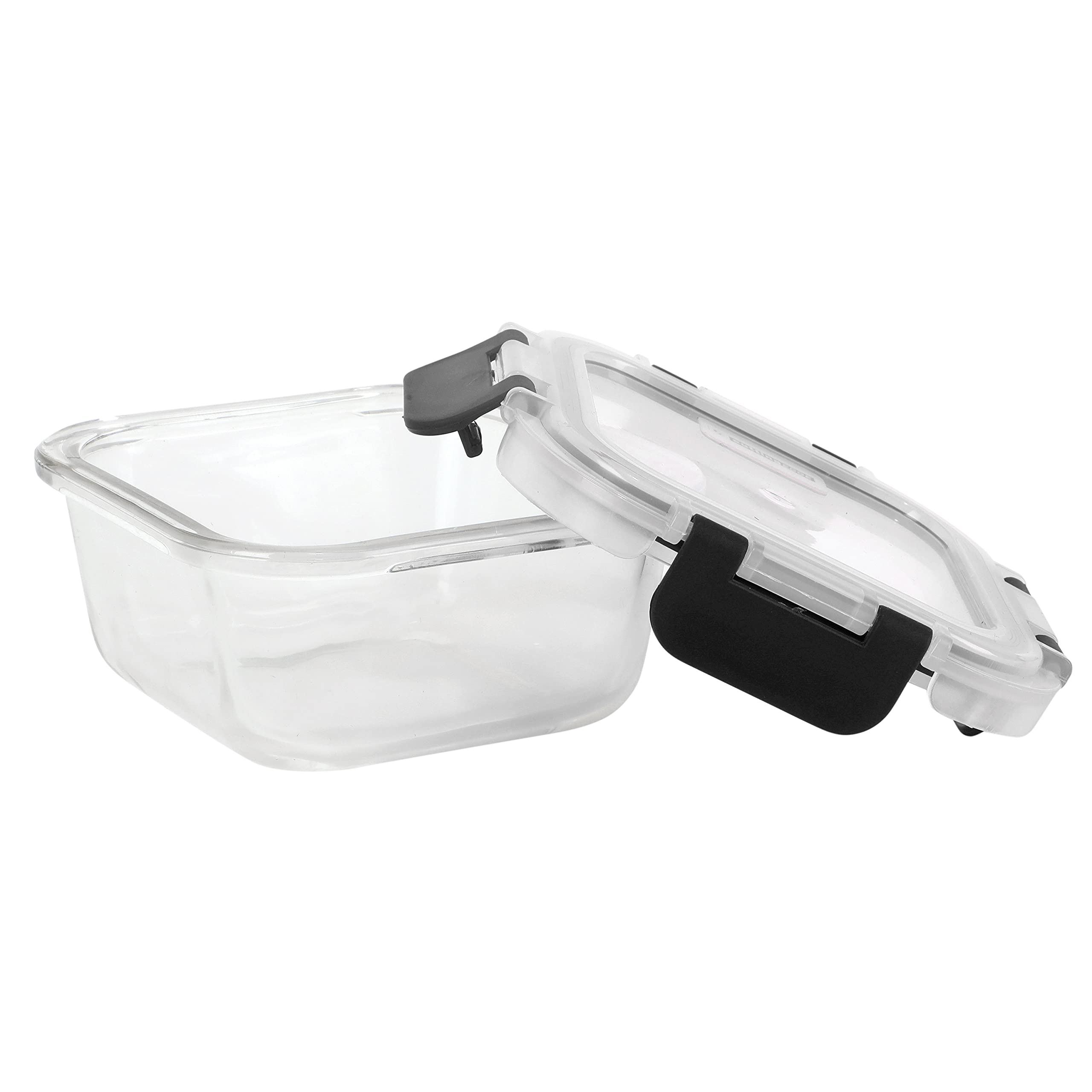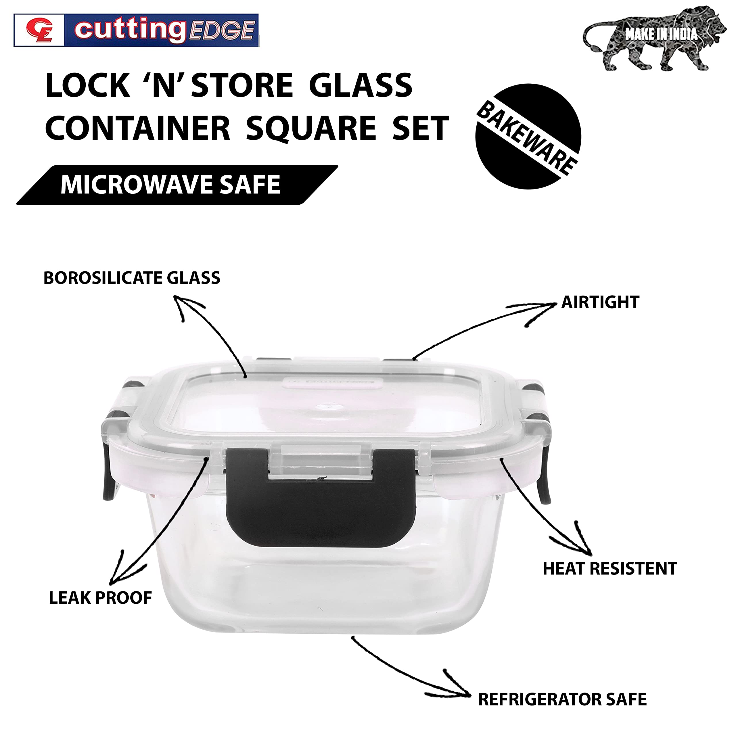 HomeKitchenContainersJars & ContainersCutting EDGE Borosilicate Glass Container with Lid Square Glass Container Microwave Safe for Kitchen (Black 320ml Set of 1)