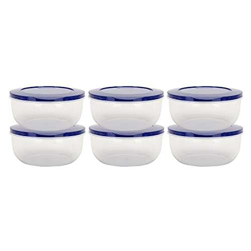 Ideal for any busy kitchen the lidded food-storage containers make it simple to freeze meals ahead of time store healthy snacks or leftovers in the fridge keep dry foods fresh in the pantry. BPA free and stain resistant the high-quality plastic containers offer long-lasting durable strength. The food-storage containers offer a space-saving stack able design. They fit one on top of the other.