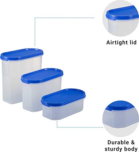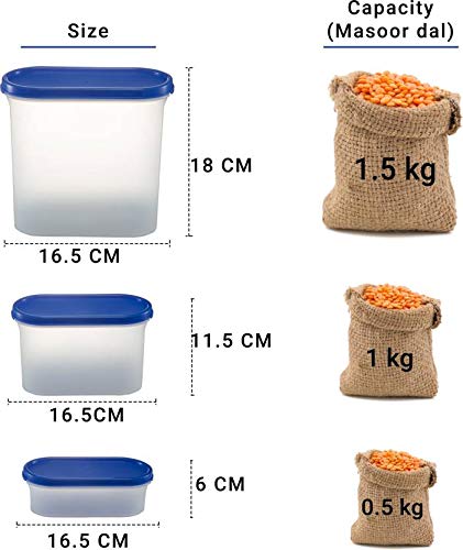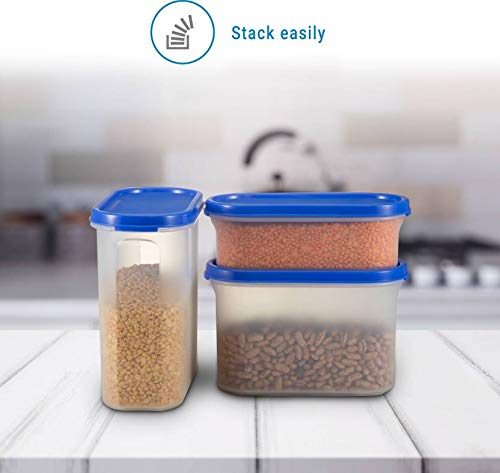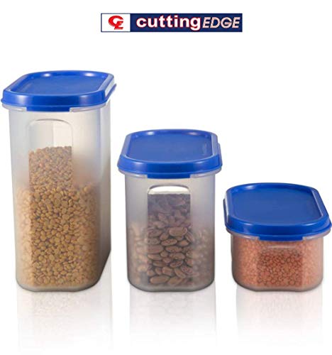 Cutting EDGE Kitchen Storage Container Set for Rice DalAtta Flour Cereals Pulses Snacks Stackable BPA Free Assorted Colors (Peppy Blue Set of 31200ml x 1 1800ml x 1 525ml x 1)