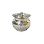 This is of small stainless steel jars specially designed for you to store oil and ghee. A prefect multipurpose storage container. Can be used for sauce, oil, vinegar, The items in this set are made of stainless steel, which gives them a bright and elegant look. Shining steel ware is a glamorous kitchen addition and is also durable and long lasting.8.5X8.5X7 cm