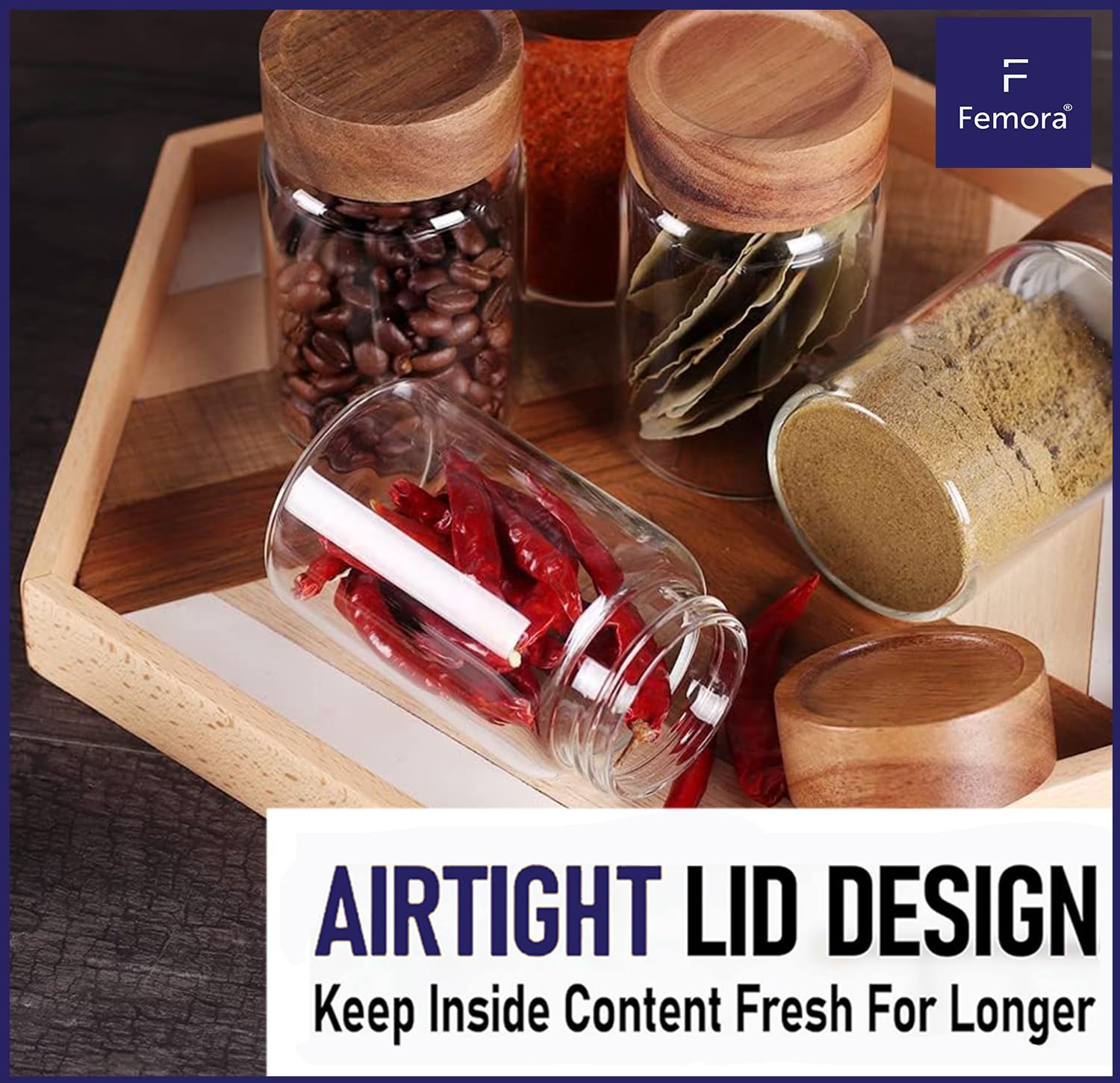 Femora Kitchen Storage Jars Borosilicate Glass With Wooden Lid Air Tight Jar 550 Ml Pack Of 1 Transparent