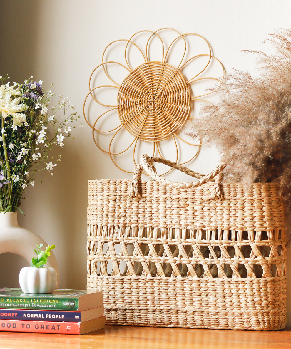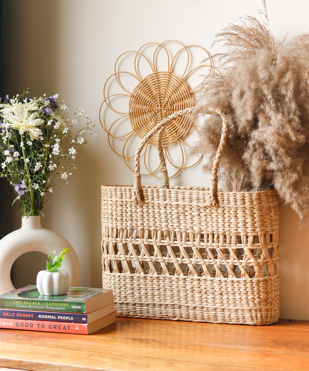 This Tote Beach Bag is the perfect tote bag for your beach trips! Made of woven natural grass, this tote bag is high-quality, very durable, and perfect for beach use or any casual day out. Its a spacious bag that fits a lot of stuff inside, like extra clothes, swimwear, personal stuff, sunglasses, and sunblock!