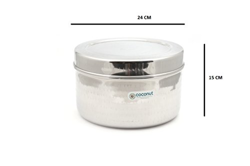 KCL is the premium brand by BM Agencies. This container has a capacity of 4000 ML. Comes very handy when it comes for multipurpose storage like snacks sweets puris papad etc.. Also comes is good use when travelling. The Height : 15CM & Length : 24CM. This products is made of high quality Stainless Steel.