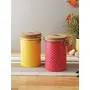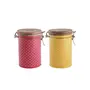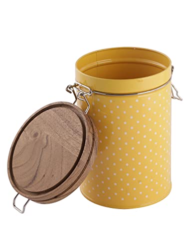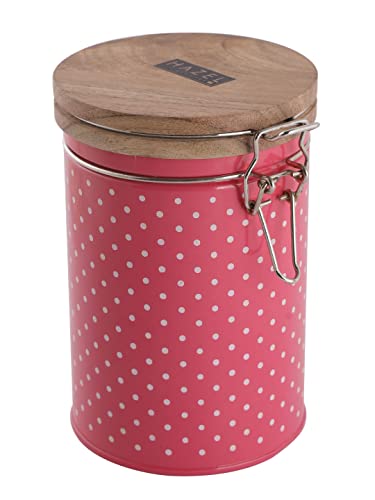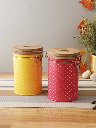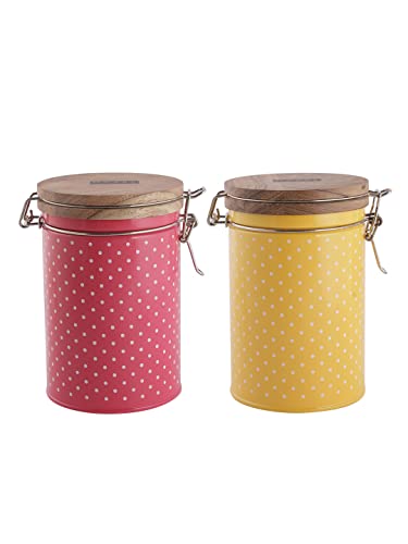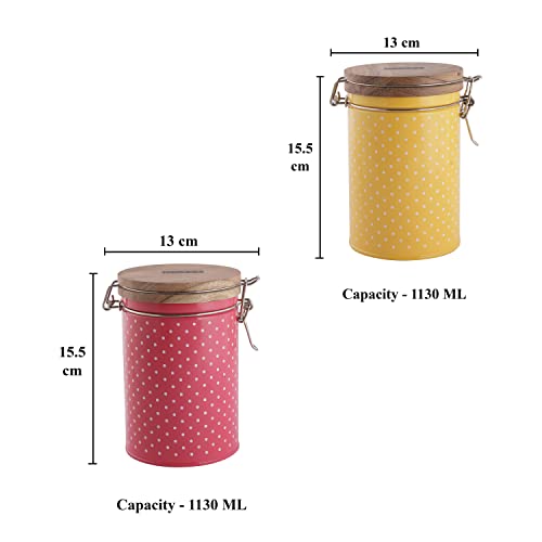 HAZEL Kitchen Container Set with Clip Lock | Storage Box For Kitchen with Polka Dot Design | Food Grade Kitchen Container Set with Wooden Lid Set of 2 Pink & Yellow 1130 ML A Galvanised Iron Container used to Tea Coffee Sugar and other such items. Available in different colours to make it look attractive. A latch lock provided on the side to ensure firmness. Galvanised Iron makes it strong durable and efficient to use. If you are looking for high quality & durable galvanized and unique storage containers for storing then we are offerings you a high standard storage container that is perfect to meet your storage need. This highly durable storage container with latch-lock and easy-grip facilities.Galvanised Iron containers used for storing Snack Tea Coffee Sugar and other such items.These stylish airtight food storage containers made from durable material will enhance your kitchen space and fit with both modern and traditional decor.Clip Locking Mechanism makes storage easier. These stylish storage container made from durable material will enhance your kitchen space and fit with both modern and traditional decor.Pink - Dots Container Dimension : 13 x 10.2 x 15.5 cm (LxBxH) Inner Diameter : 10 cm Weight : 252 grams apx Capacity : 1130 MLYellow Dots Container Dimension : 13 x 10.2 x 15.5 cm (LxBxH) Inner Diameter : 10 cm Weight : 252 grams apx Capacity : 1130 ML6 Months Manufacturer Warranty. This product is under 6 Months Warranty from the date of retail purchase against any manufacturing defects in material and workmanship. The Warranty does not cover damages resulting from accidents mishandling or tampering with the mechanism. Warranty valid against producing original bill endorsed by the seller.