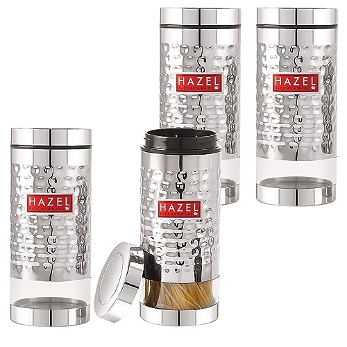 HAZEL Stainless Steel Hammered Finish Transparent Glossy See Through Container, Set of 4, 1000 ML Each, Silver