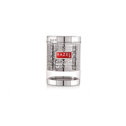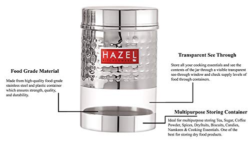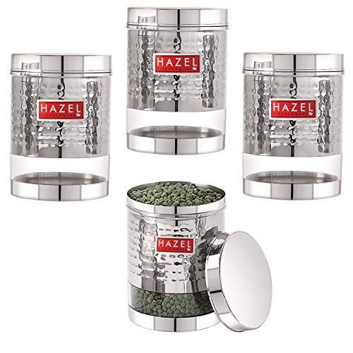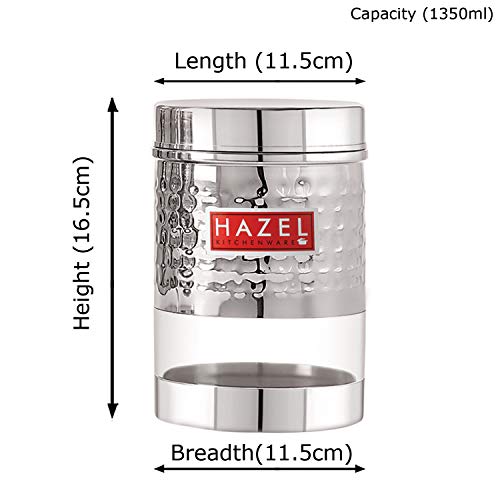 HAZEL Stainless Steel Hammered Finish Transparent Glossy See Through Container, Set of 4, 1350 ML Each, Silver