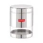 HAZEL Stainless-Steel Kitchen Container I Transparent Kitchen Container Set with Glossy Finish I Multipurpose Kitchen Storage Organizer Set of 2 SilverContainers have a see through body looks like elegant and It is ideal for keeping a track of your food products. If you are looking for high quality & durable stainless steel storage Containers for storing Then we are offers you high standard stainless steel storage container which is perfect to meet your storing need. This highly durable stainless steel storage containers with stainless steel lid. Perfect for gifting purposes at weddings anniversaries.Store all your cooking essentials and see the contents of the jar through a visible transparent see through window and check supply levels of food inside containers. Made from high quality food grade stainless steel container which ensures strength quality and durability.The modern design see through canister container is perfect for your beautiful home and kitchen. Airtight lids ideal for keeping out moisture.Ideal for multipurpose storing Tea Sugar Coffee powder Spices Dryfruits Biscuits Candies Namkeen & Cooking Essentials.Wash Care Instructions:- Wash with lukewarm water Do not scrub with scrubber Not for hot filling. Avoid the use of abrasive scrubbers.800 ML Container Dimension : 9.5 x 9.5 x 13 cm (LxBxH) Diameter : 9 cm Weight : 260 gm Capacity : 800 ML.600 ML Container Dimension : 9.5 x 9.5 x 11 cm (LxBxH) Diameter : 9 cm Weight : 235 gm Capacity : 600 ML.6 Months Manufacturer Warranty.This product is under 6 Months Warranty from the date of retail purchase against any manufacturing defects in material and workmanship. The Warranty does not cover damages resulting from accidents mishandling or tampering with the mechanism. Warranty valid against producing original bill endorsed by the seller.