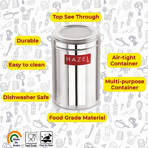 Available in multiple different sizes according to need of kitchen. Easy to clean and wash they have very exotic silver shining. Made from Heavy Gauge & High Grade stainless steel Life time rust free Strong Durable Valuable & Dishwasher Safe. They are durable have easy to open lids easy to clean and do not contain any harmful chemicals so you will have no concerns about harmful toxins that can leach into your food. The clear clamp lid provides for easy visibility of the contents of the canister.