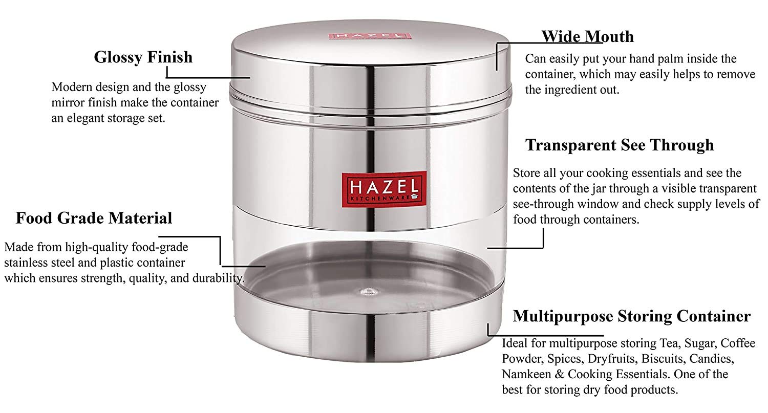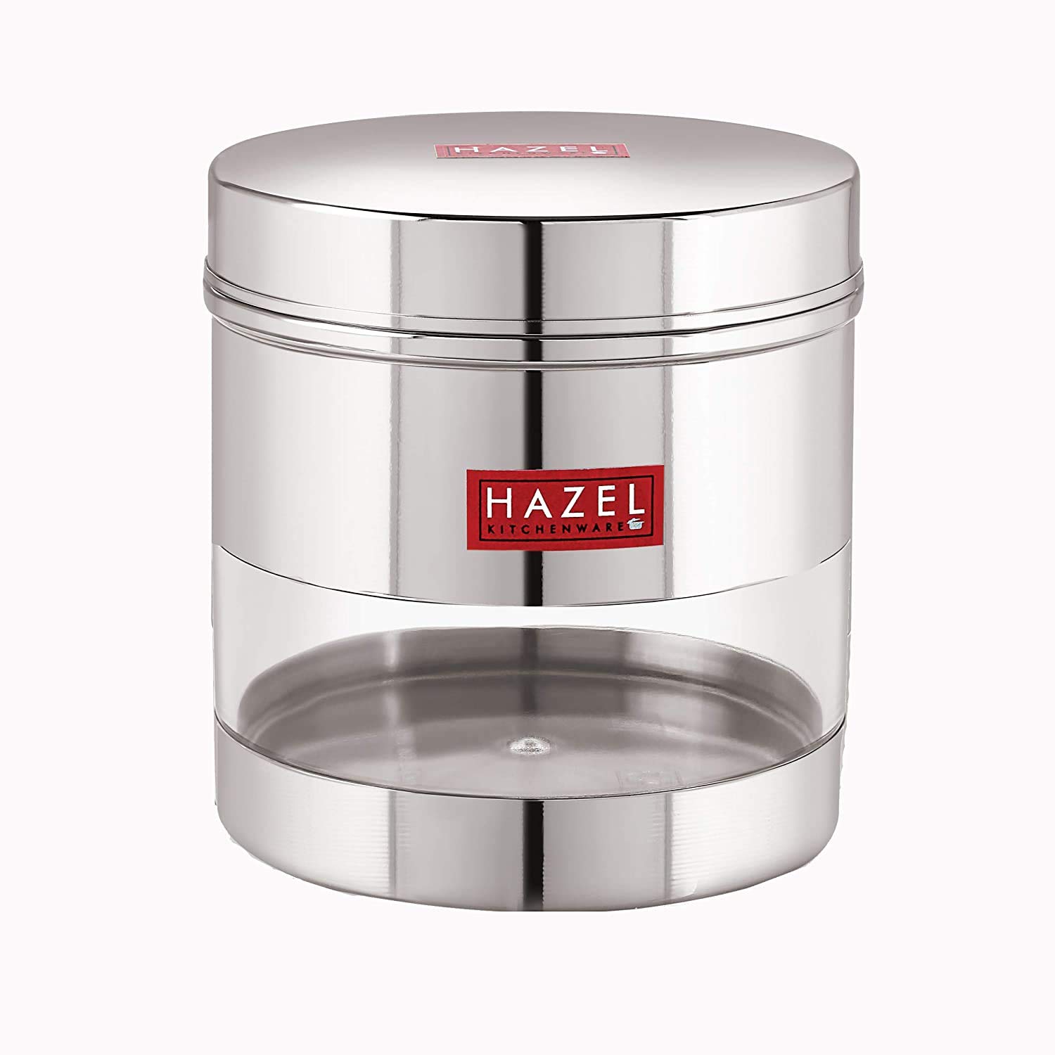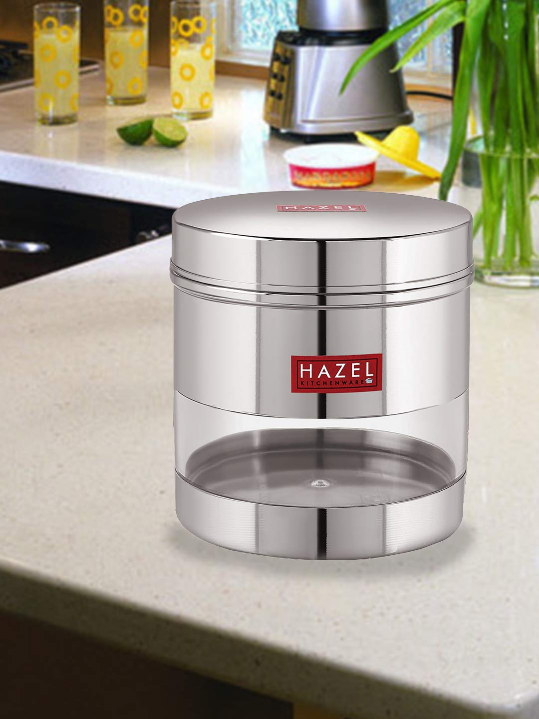 HAZEL Stainless Steel Transparent Wide Mouth See Through Container Silver 1 PC 750 Ml