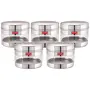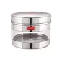 HAZEL Stainless Steel Transparent Wide Mouth See Through Container Silver Set of 5 500 Ml Containers have a see through body looks like elegant and It is ideal for keeping a track of your food products. If you are looking for high quality & durable stainless steel storage Containers for storing Then we are offers you high standard stainless steel storage container which is perfect to meet your storing need. This highly durable stainless steel storage containers with stainless steel lid. Perfect for gifting purposes at weddings anniversaries. Hazel is one of the leading brand in household products. Hazel designs products as per the market trends with maintaining standard quality. Hazel have wide range of kitchenware products like containers bottles baskets jugs. plates bowls trays scissors knives spoons topes pali palati pans pots cookers flasks thermos lunch boxes etc. Hazel use the high quality material such as food grade stainless steel plastic melamine ceramic etc. all your cooking essentials and see the contents of the jar through a visible transparent see through window and check supply levels of food inside containers. Made from high quality food grade stainless steel container which ensures strength quality and durability.The modern design see through canister container is perfect for your beautiful home and kitchen.Ideal for multipurpose storing Tea Sugar Coffee powder Spices Dryfruits Biscuits Candies Namkeen & Cooking Essentials. Wash Care Instructions:- Wash with lukewarm water Do not scrub with scrubber Not for hot filling. Avoid the use of abrasive scrubbers.Product Dimension:- 10 x 10 x 9.25 cm (L x B X H) Weight:- 170 Gms Diameter:- 10 cm Capacity:- 500 ML. (Rice Capacity:- 400 gm apx.)3 Months Manufacturer Warranty