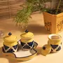 KHURJA POTTERY Ceramic Hand Painted Tabletop Jars Set (3 Jars with 3 lids 1 tray) for Kitchen/Toothpick Holder/Dinning Table/Chatni/Spices/Storage/Gifts 140 ML