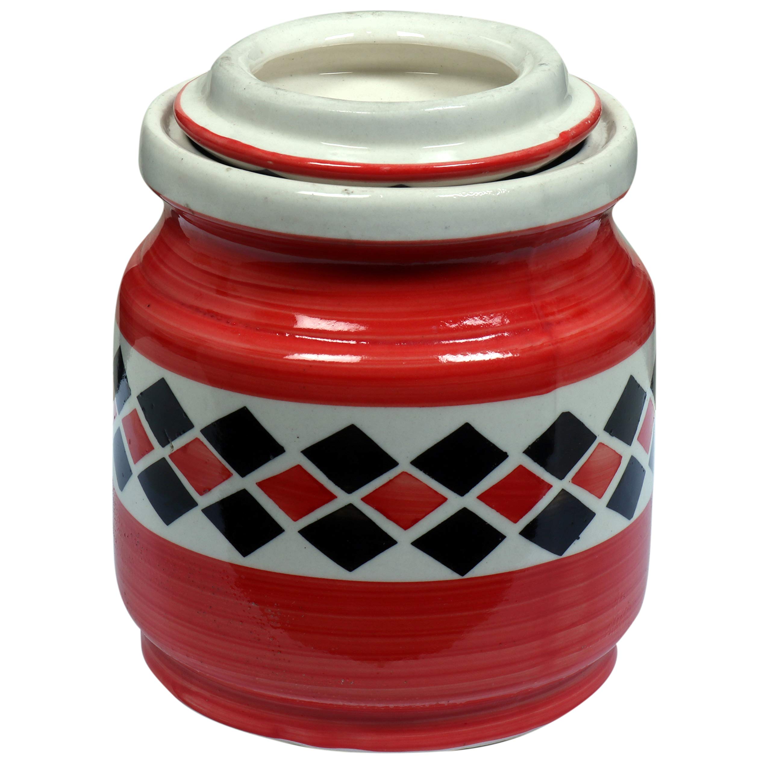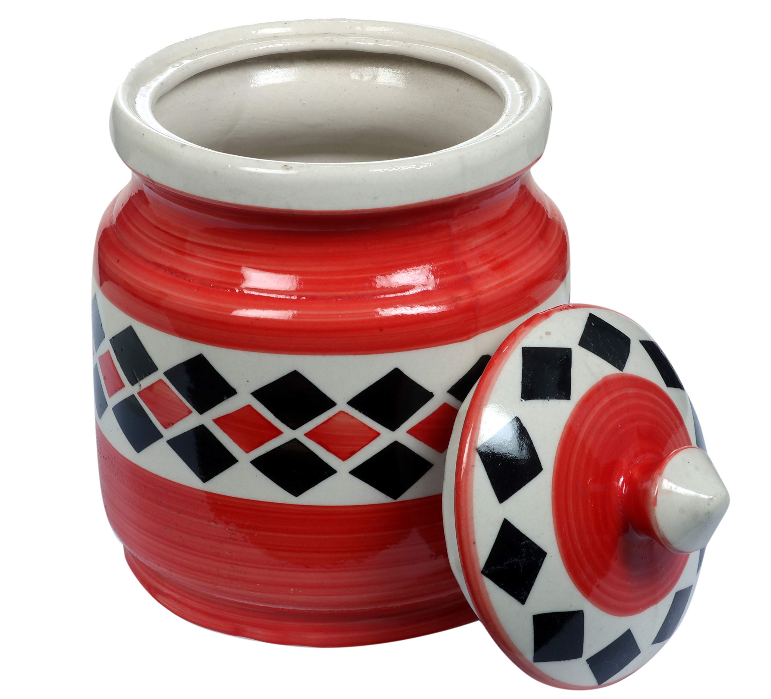 KHURJA POTTERY Ceramic Storage Container Jar with Lid Storage Canister for Home Kitchen (Red) -2kg