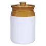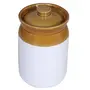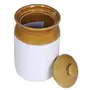 KHURJA POTTERY Cream Pottery Hand Paintaed Ceramic Cornichon Storage Jar for Pickle (Cream 2 KG)