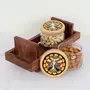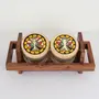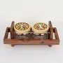 Transparent Glass Jar Set of 2 with Handpainted Wooden Lids the perfect blend of functionality and elegance for your home. Elevate your kitchen or dining table with these beautifully crafted jars that combine style utility and a touch of rustic charm. These glass jars are designed to provide a clear view of the contents inside allowing you to showcase the vibrant colors and textures of your favorite ingredients from colorful spices to delectable sweets. The glass jar set features intricately handpainted wooden lids that add an artisanal touch to your kitchen decor. Each lid is a unique piece of art adding warmth and character to your home. To make your dining experience even more special our glass jar set comes with a matching wooden tray. The tray not only adds a cohesive look to your table but also makes it easy to carry and display your jars with elegance.