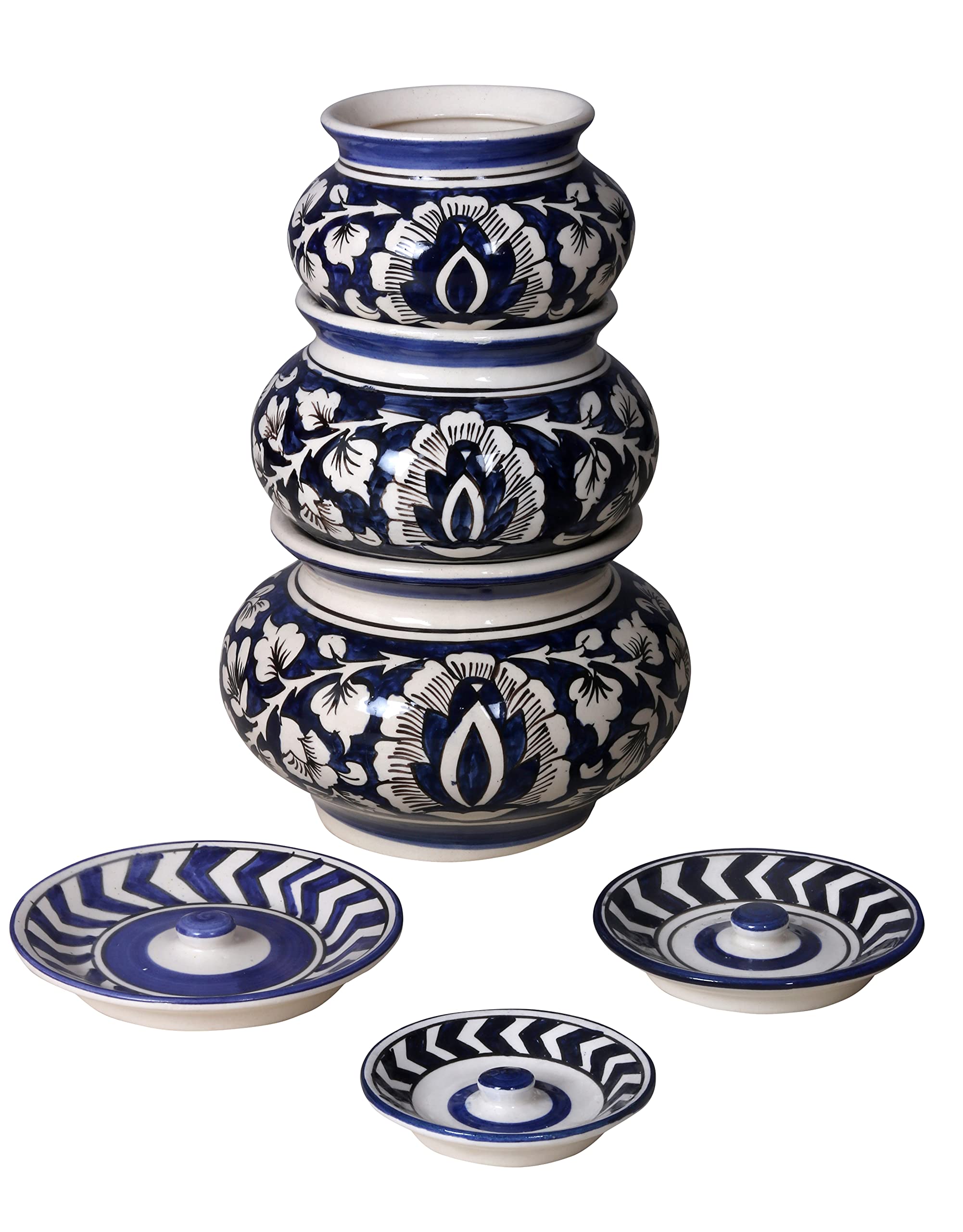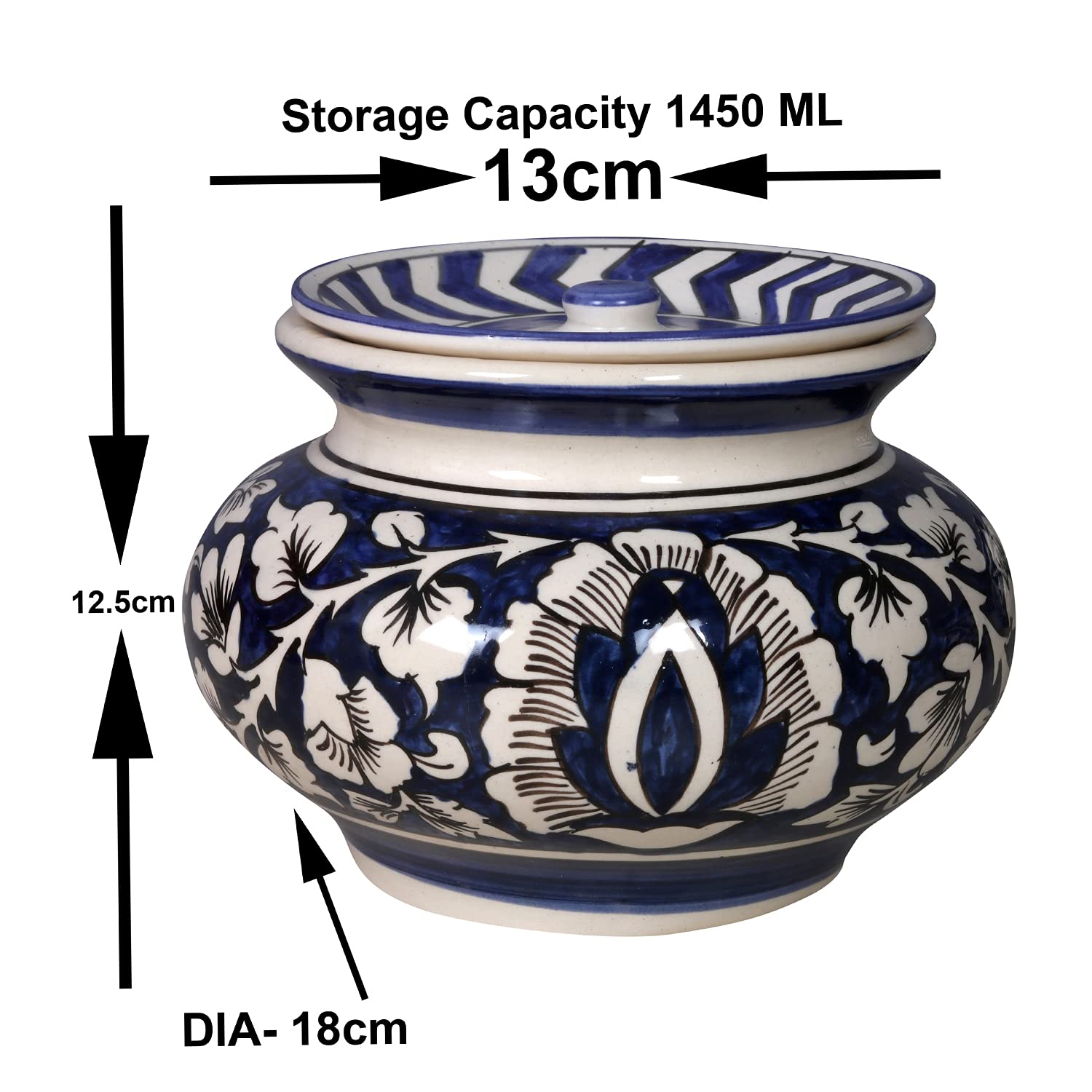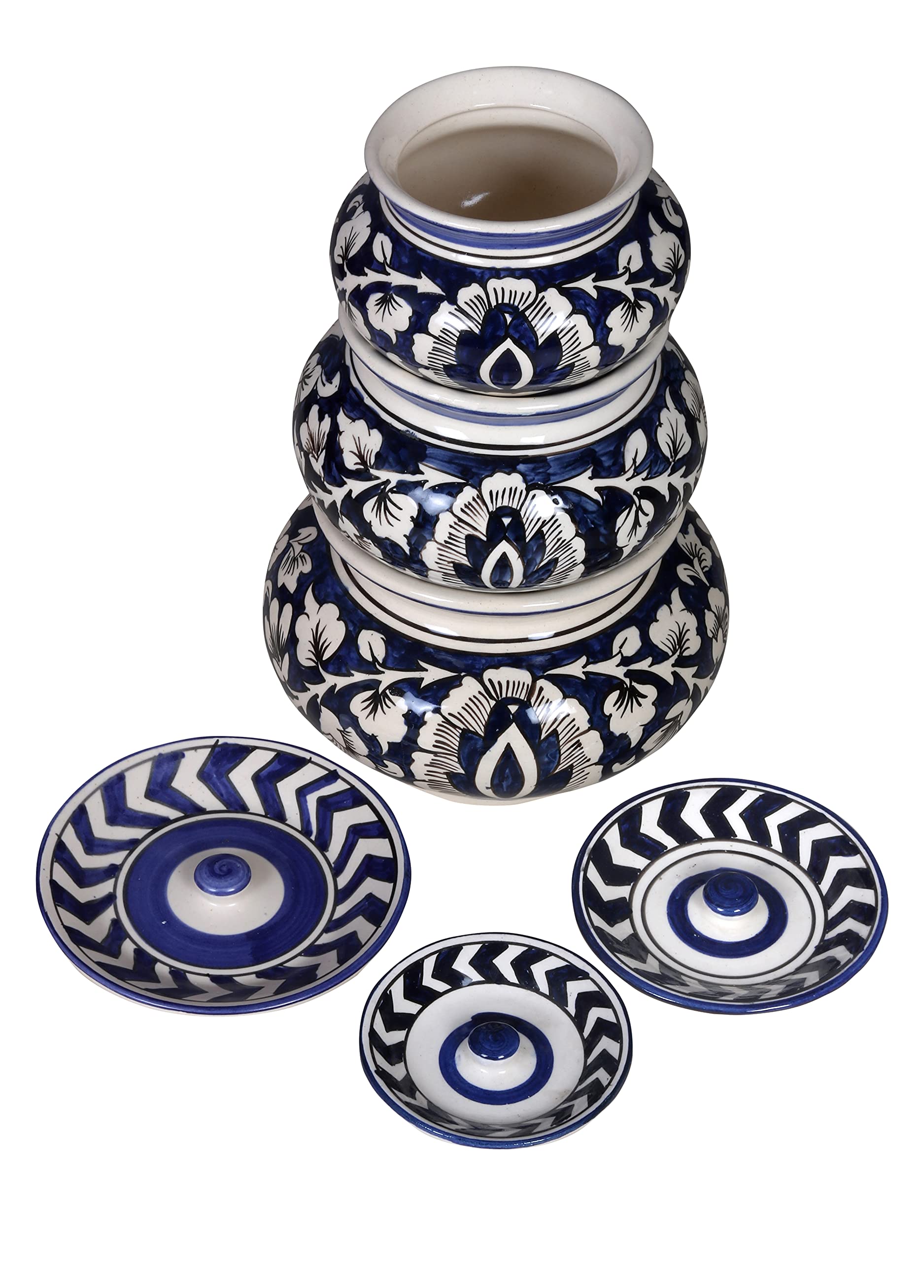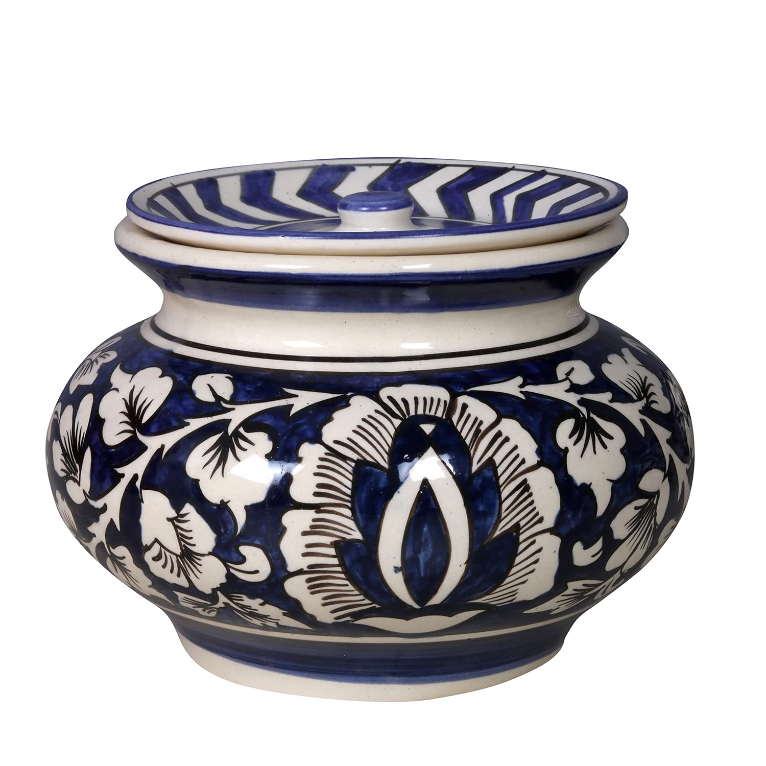KHURJA POTTERY brings handmade ceramic serving handi which adds a premium touch to your kitchen and dining. These are handmade hand painted and hand glazed classic design elegant sense of contemporary style and unique design is perfect for daily and special occasion use. Lustrous clear handmade ceramic pottery is must art to your dining space. Ceramic Handi features sophisticated oriental inspiration mixed with modern technique that makes it one of a kind. The tableware offered are handpicked with a prime focus of bringing more elegance to your kitchen dining table dinner table and crockery closets. The unique colors and designs offered brings in warmth to your home. Can be a great gift for your loved ones. Use as Kitchen and Dining Accessories Items For Home Office Hotel Restaurants and Pantry.