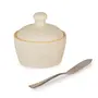 KHURJA POTTERY manufactured this elegant white matt butter pot keeps the butter fresher for longer and at the right consistency for spreading on crusty bread or baked potatoes for morning toast or evening dinner rolls. It is also perfect for keeping the butter at room temperature for everyday use. This pot is constructed from stoneware a high quality ceramic material. Its finish and amazing matt finish ensures that this pot will blend in beautifully with any type of surrounding you may have. Whether you are running a catering company a sit-down restaurant or buffet this butter pot is a beautiful and necessary accessory. Butter has never looked better than when neatly displayed in this dish. It adds pure elegance and sophistication to your table decor with its modern design. Can also be used for storing and serving chutneys and pickles besides butter.