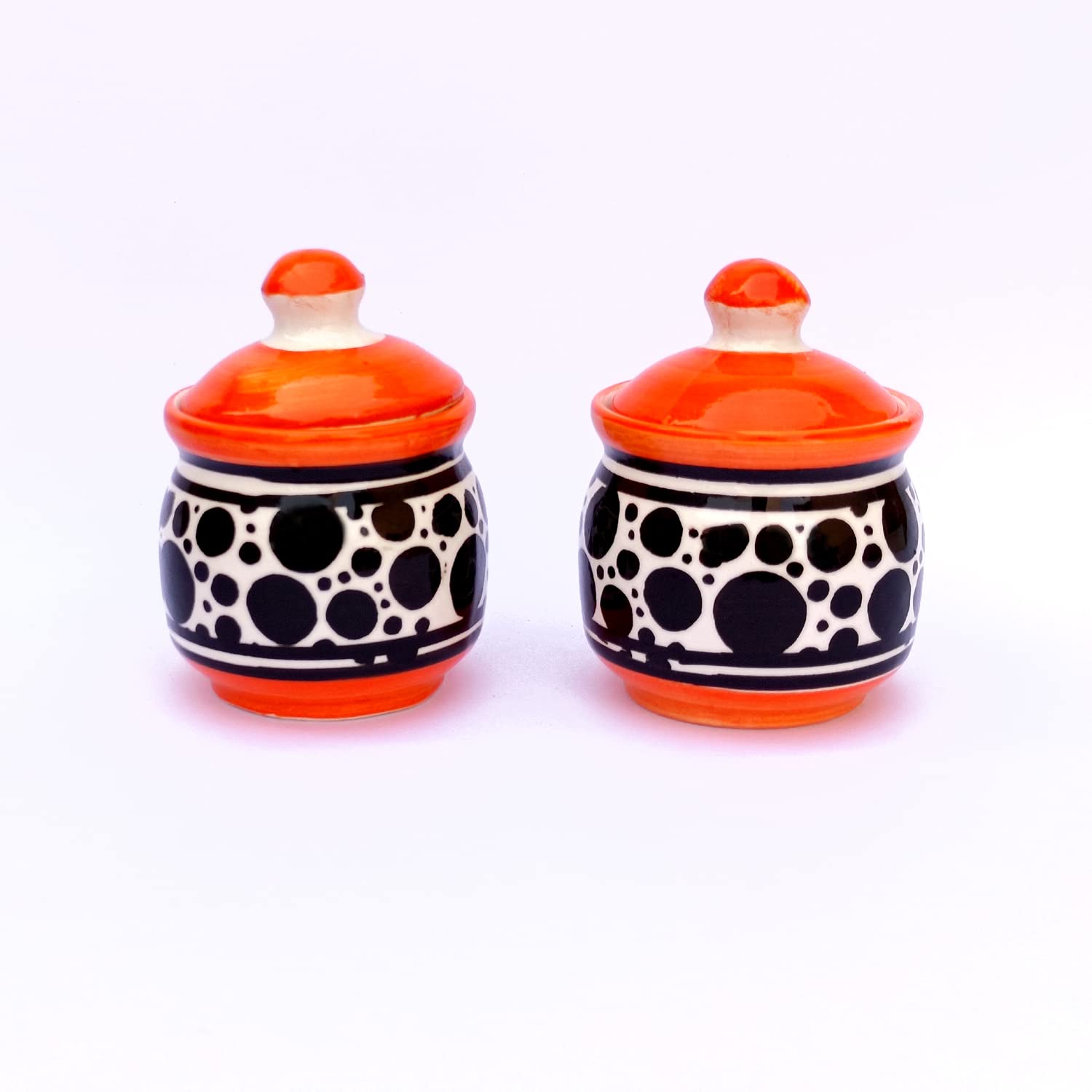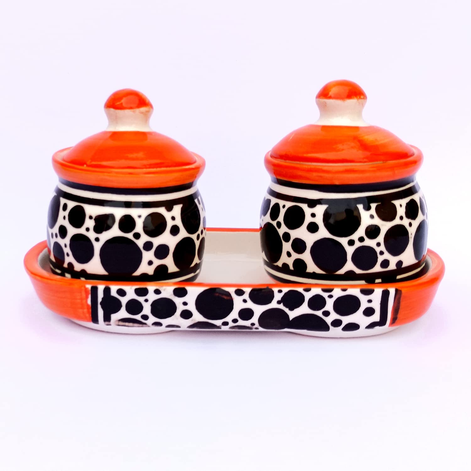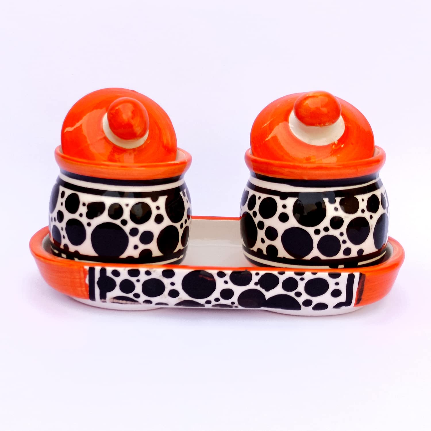 Made in India for an initiative of Aatam Nirbhar Bharat A Product with simple handle and detailed with Handpainted Glaze. Handmade and hand glazed with love from the interiors of India. They make the perfect addition to any kitchen and table spaces as art pieces displaying an exemplary glimpse of studio pottery from India. Those who love their food love their kitchen will definitely love this modern product. Best for serving casually or occasionally at one on Breakfast Lunch & Dinner time. Tip to bottom is 100% handmade with fine details. An ideal gift for housewarming party. Comes in a set of 2 with Tray. The product is lead free. The product is dishwasher & microwave safe.