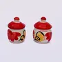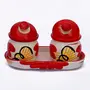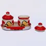 KHURJA POTTERY Pickle Jar Storage Container Chutney Serving Set with Tray(Red Yellow Black) Condiment Set | Pickle and Chutney Jar Set for Dining Table