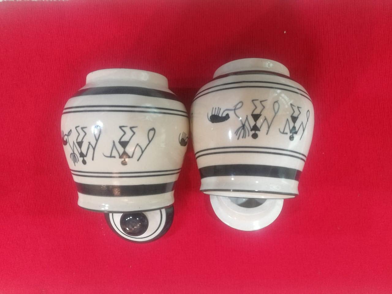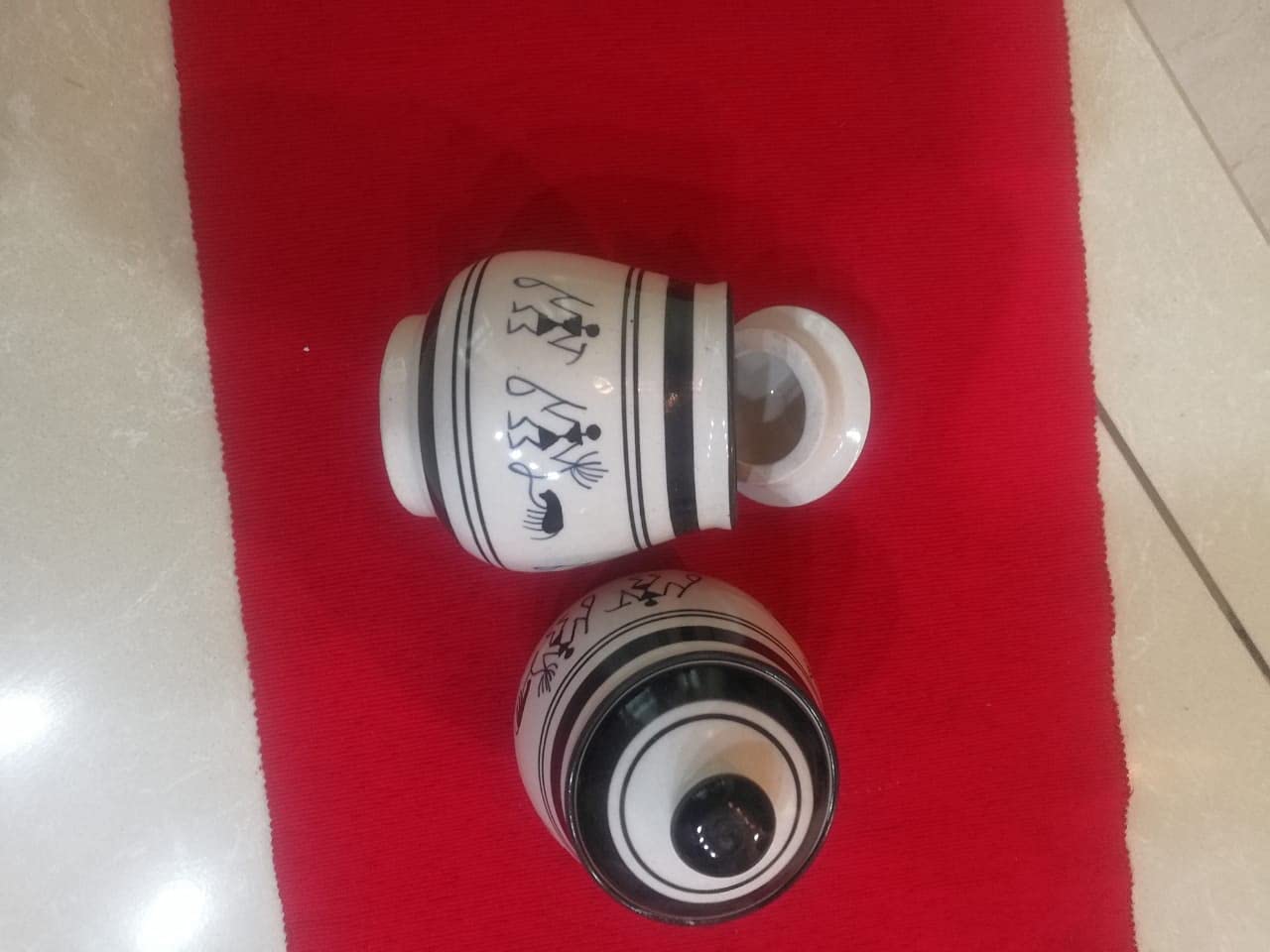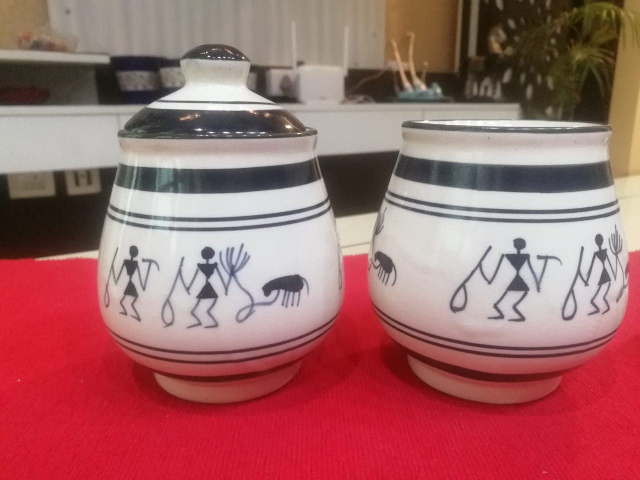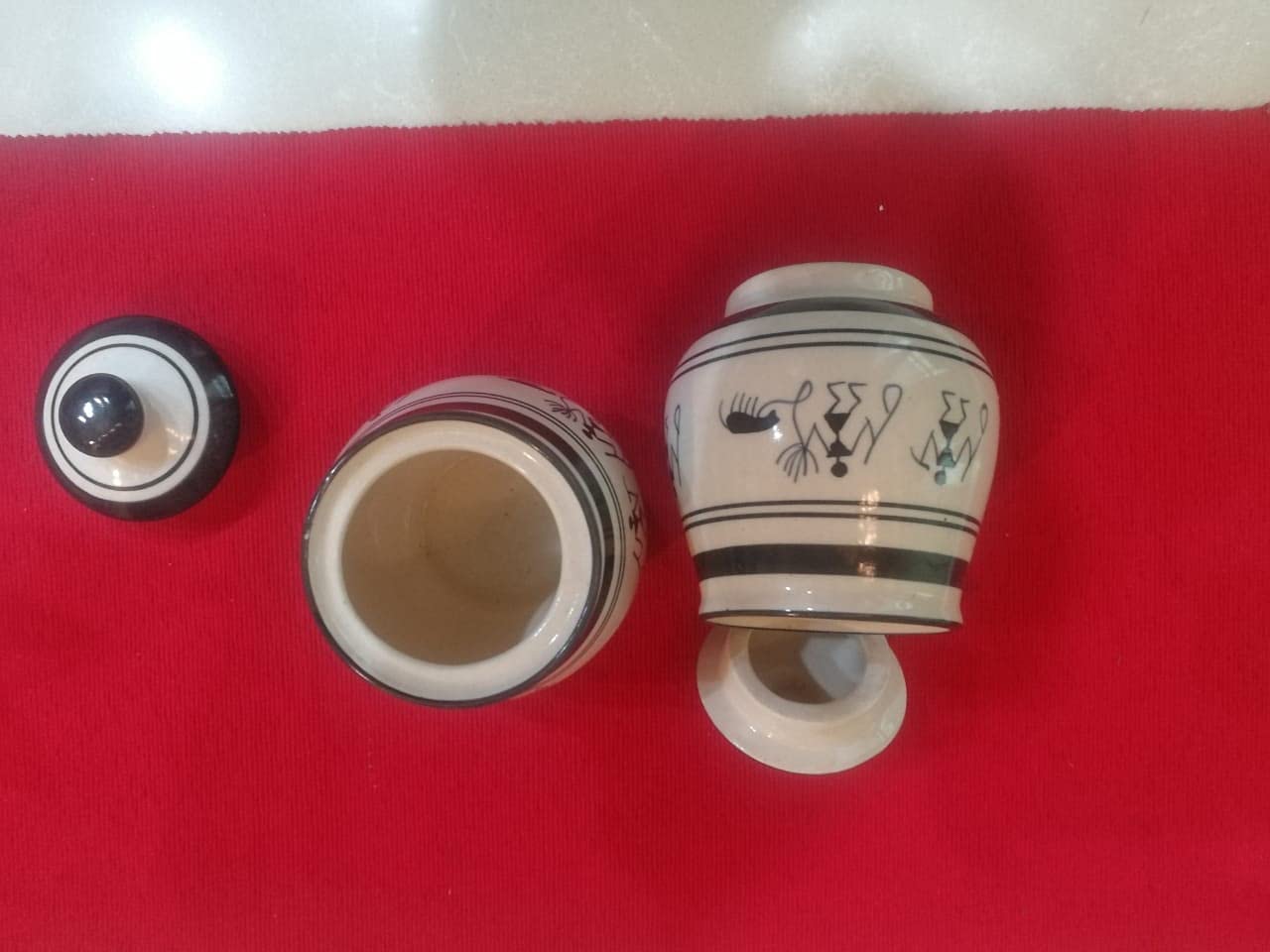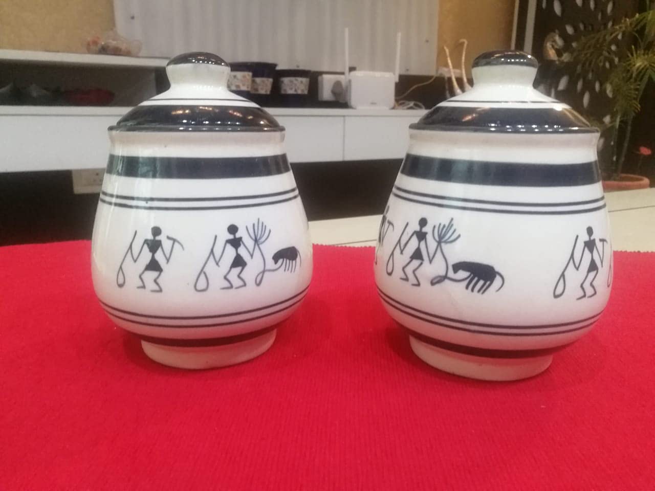 These beautiful jars with lids in brilliant indigo blue pottery is a must carry for every home. It features a timeless design White with a delicate filigree swirl and leaf motif. Lustrous clear glazed blue pottery is a unique art form whose origins date back to ancient turkey. Each piece comes with a brilliant white interior that beautifully sets off the White patterns. Exclusive to KHURJA POTTERY.